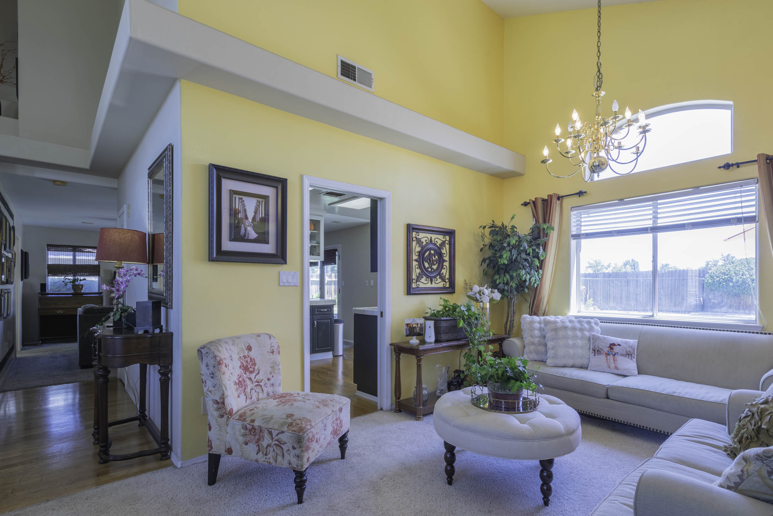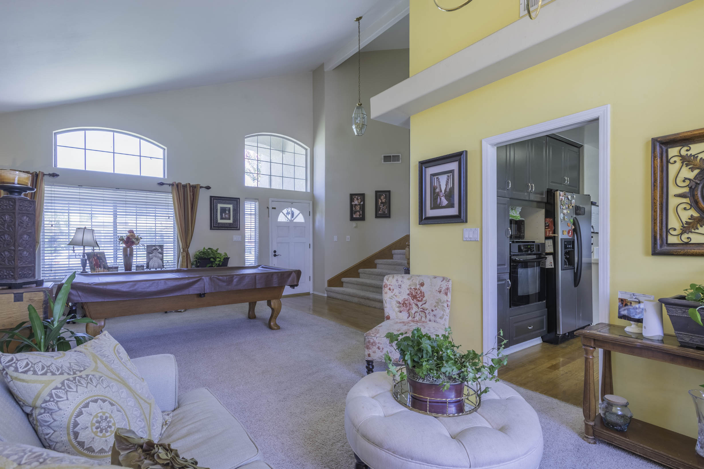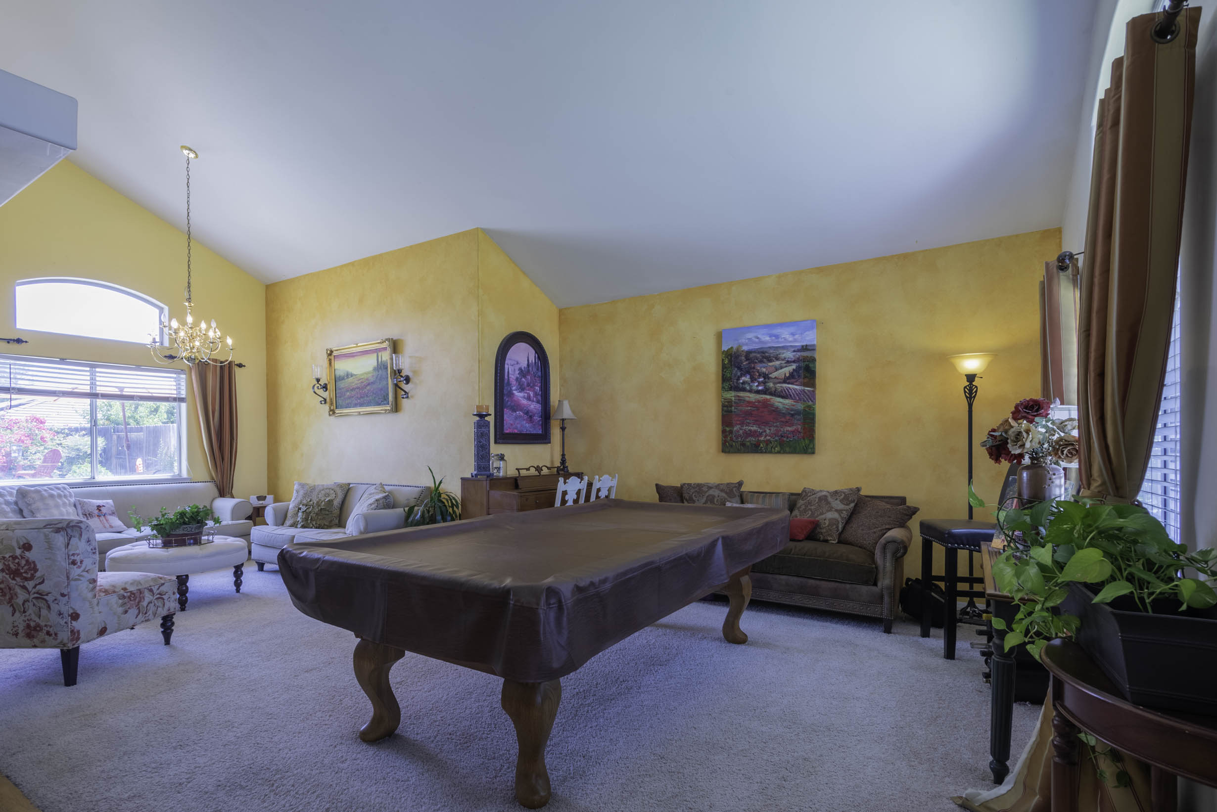 Vaulted ceilings, beautiful window coverings!