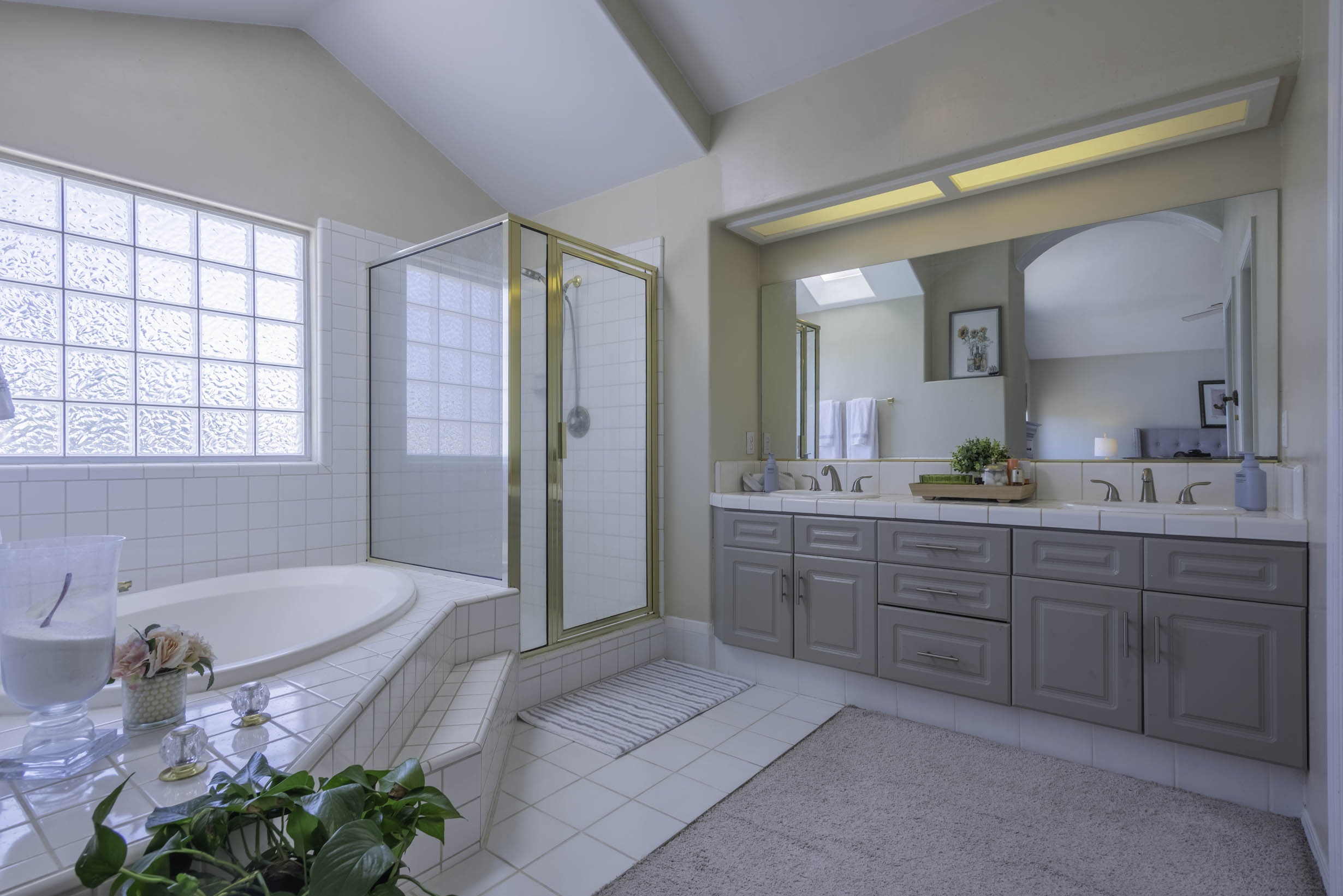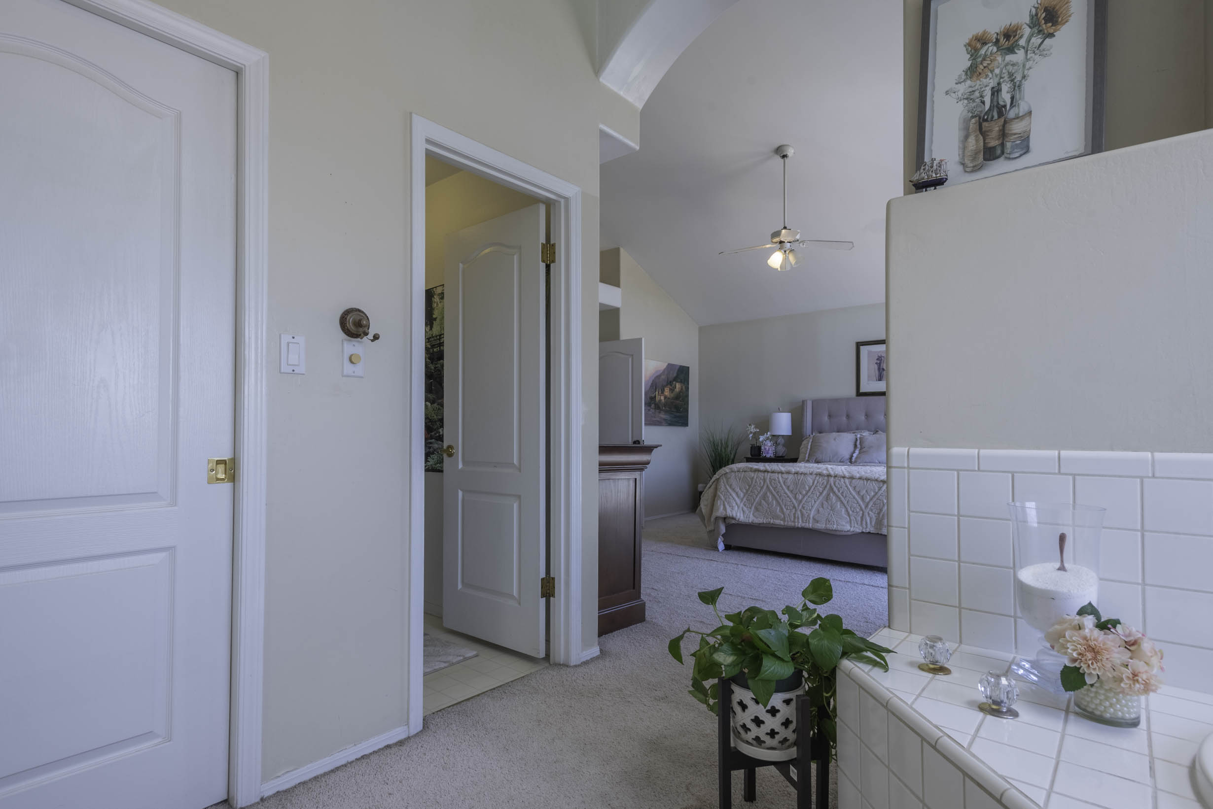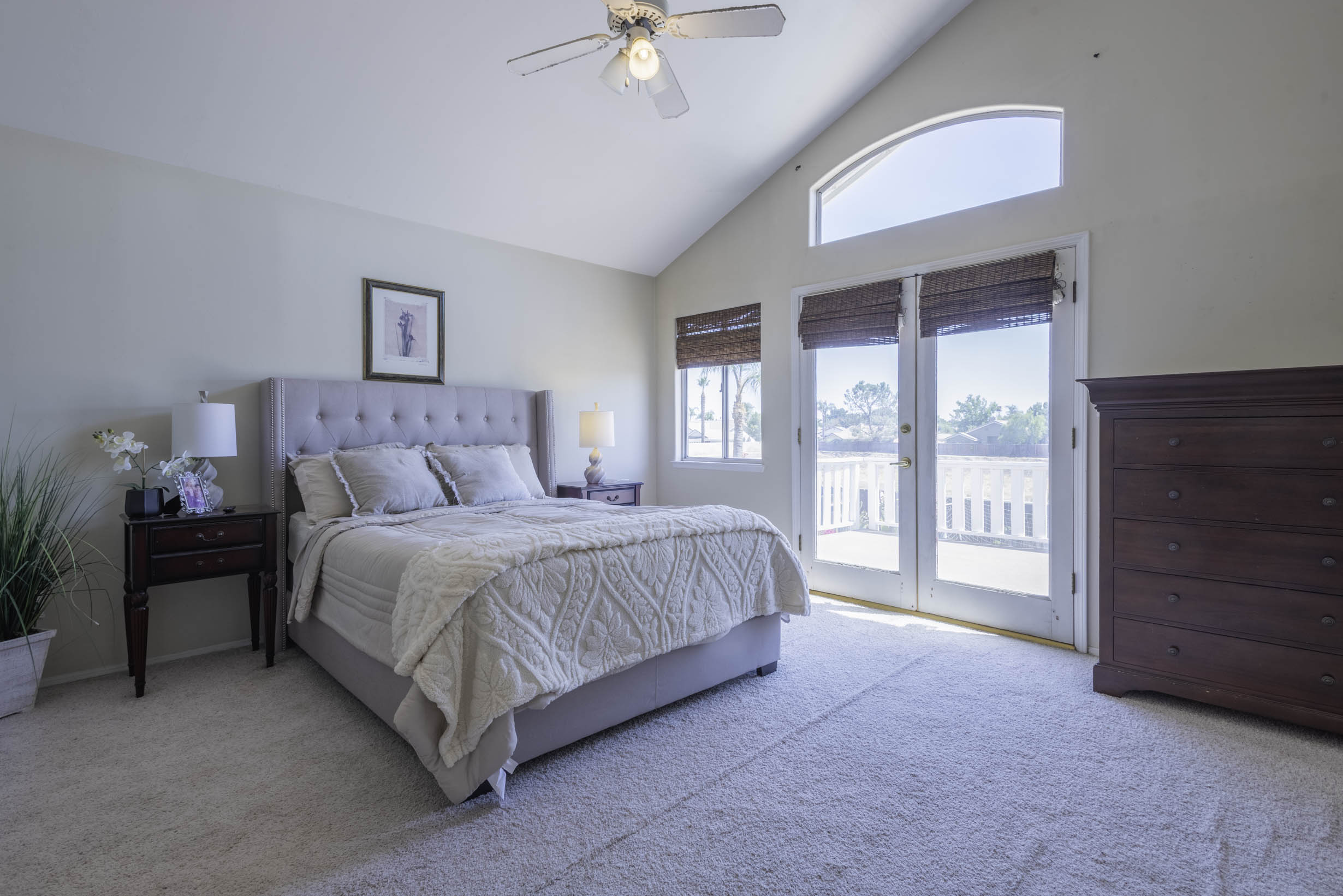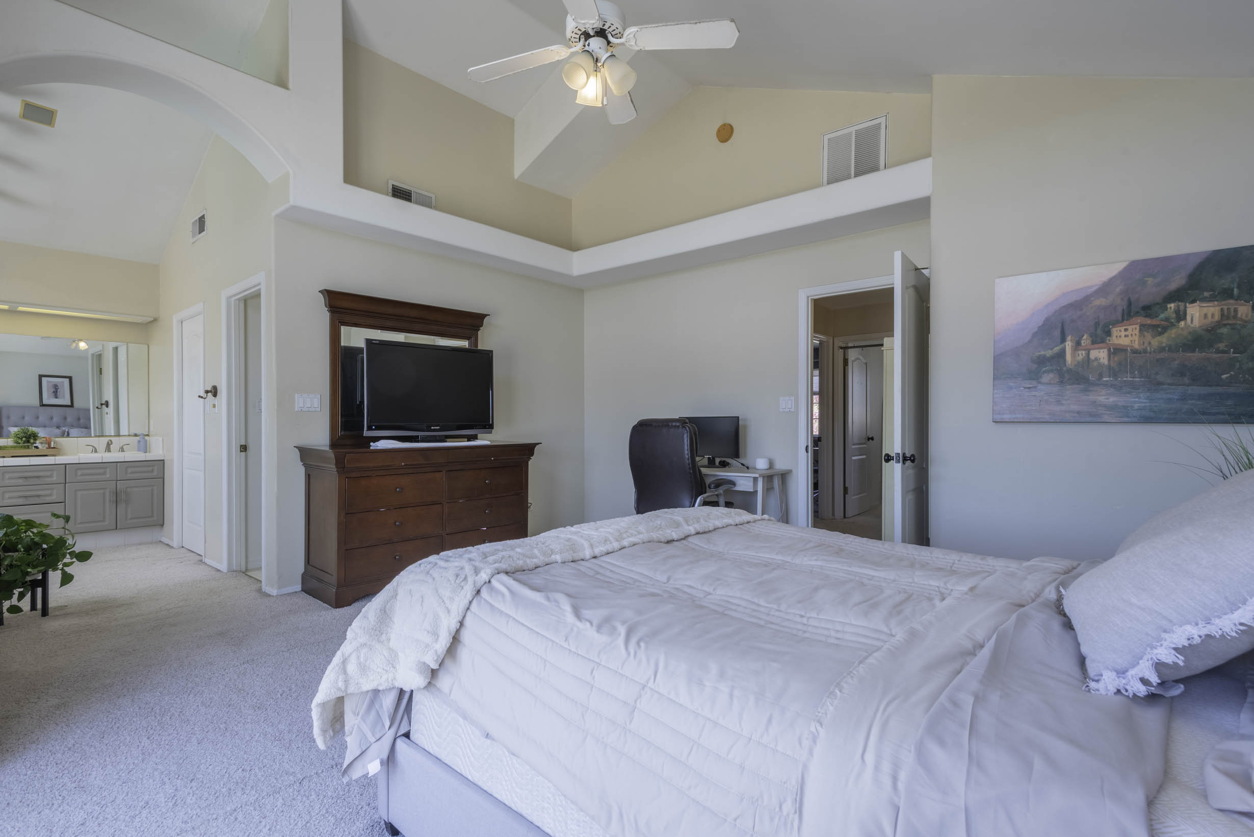 Vaulted ceilings, beautiful window coverings!