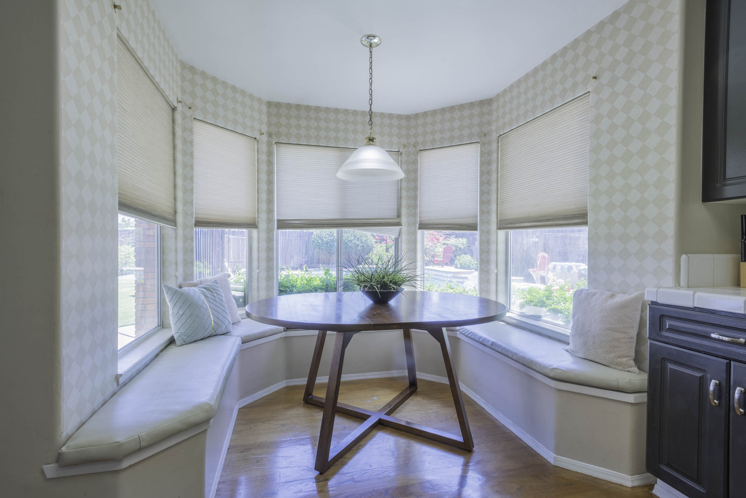 Adjacent sunny bay window breakfast nook