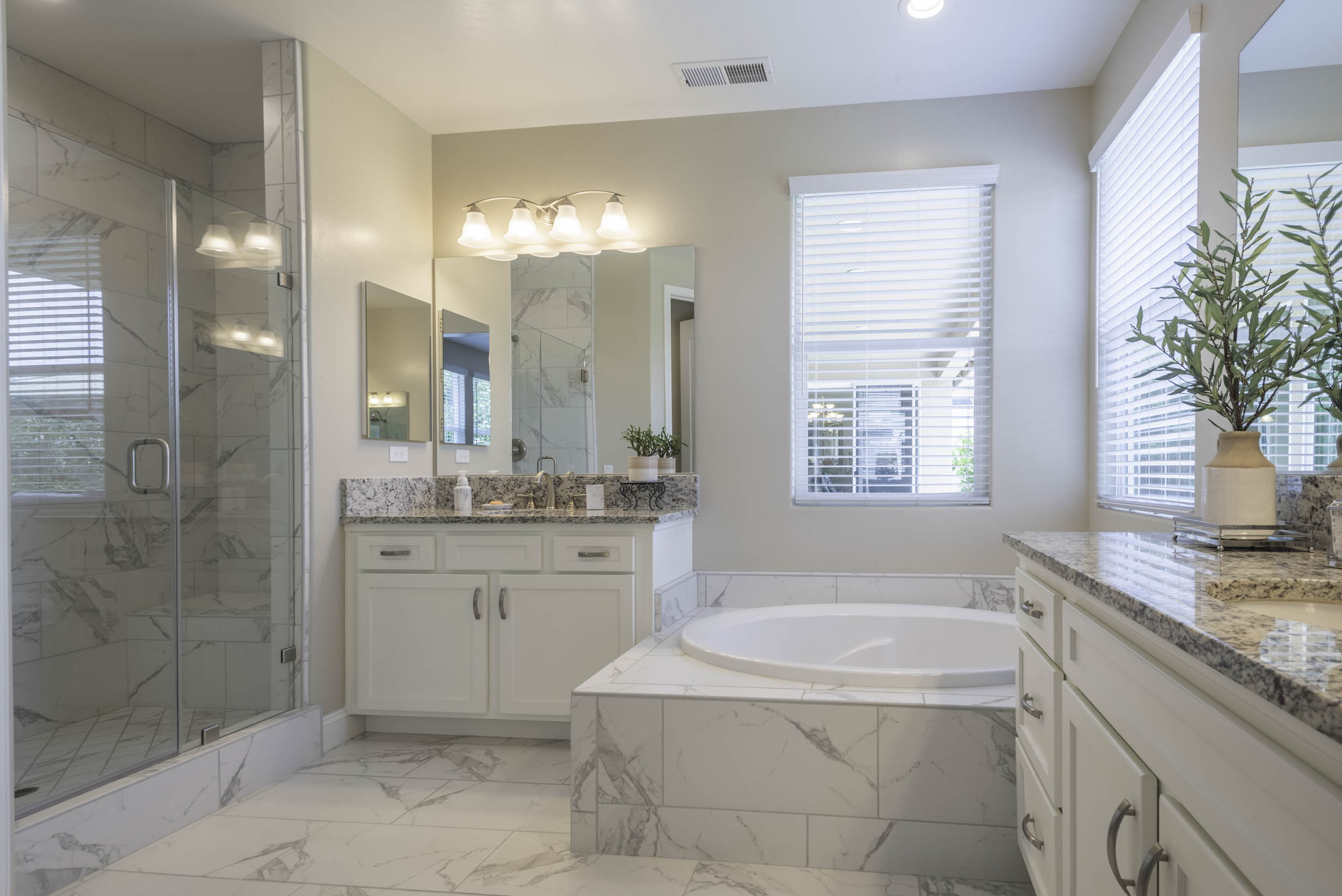 Primary Retreat w/ensuite; separate dual vanities, garden tub, stall shower + private water closet