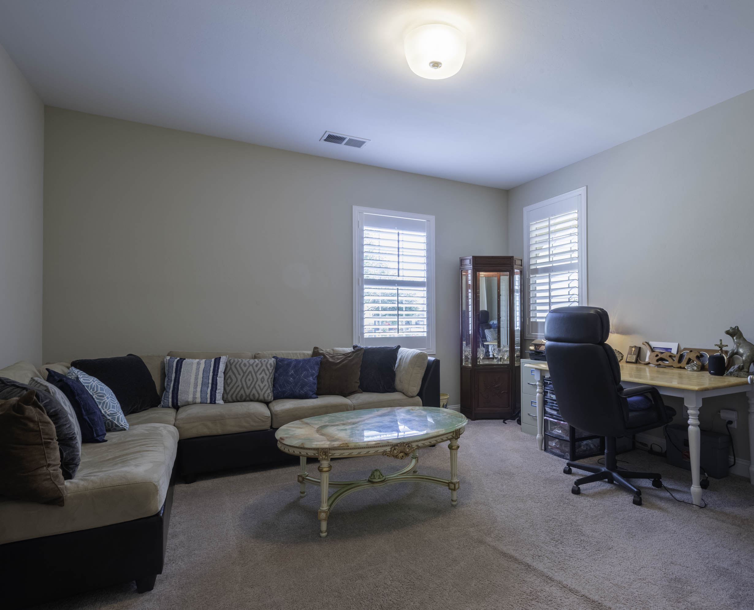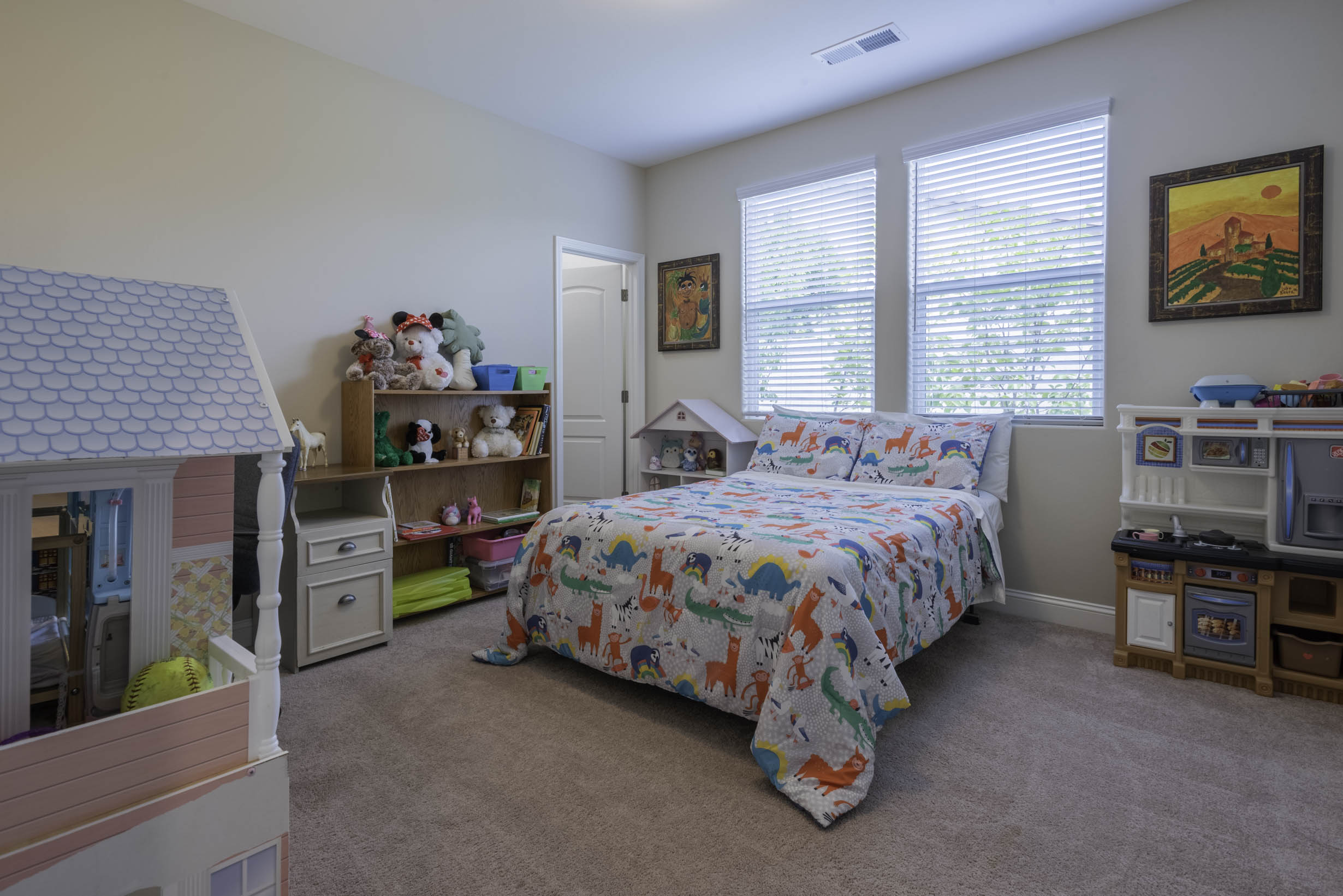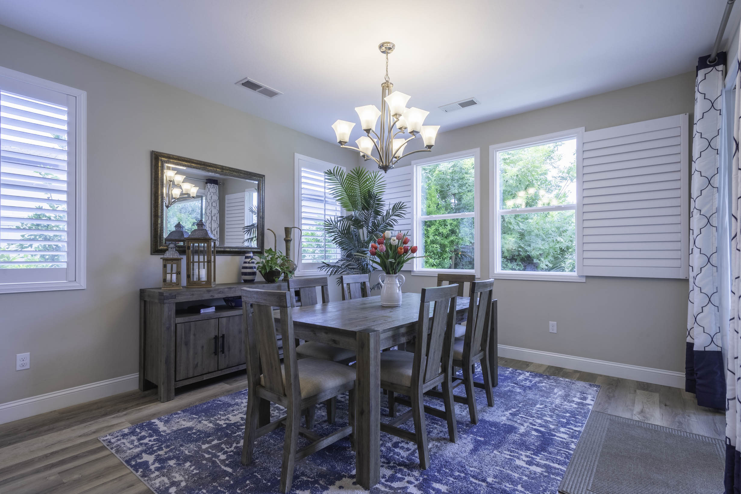 Gathering space includes lots of windows and dining!