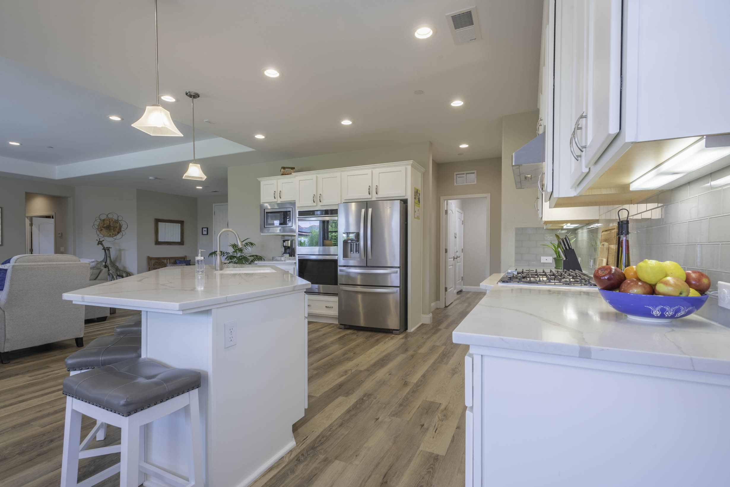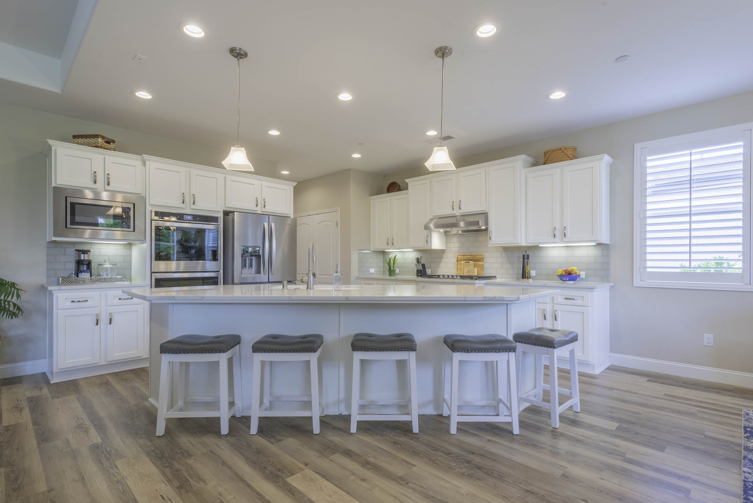 Stunning Wht Quartz Countertops + LVP Flooring + Shuttered windows