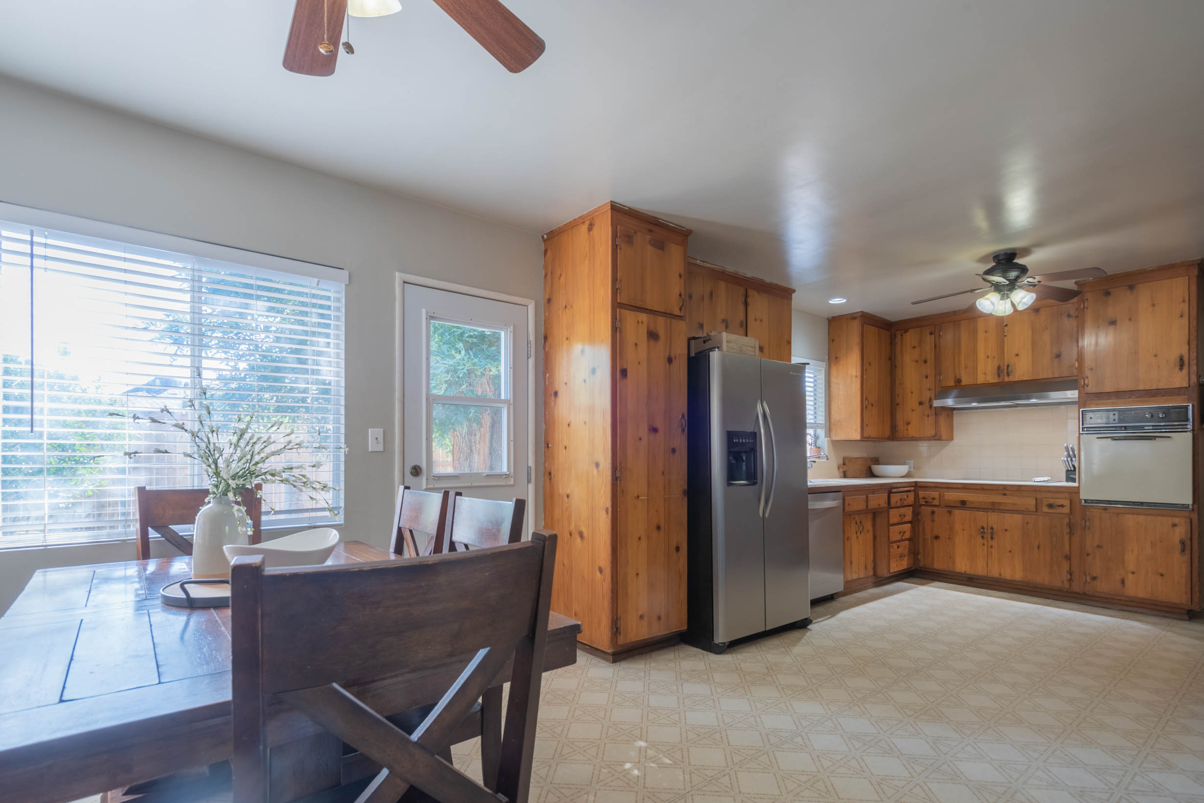 Covered rear patio w/shade tree & citrus tree