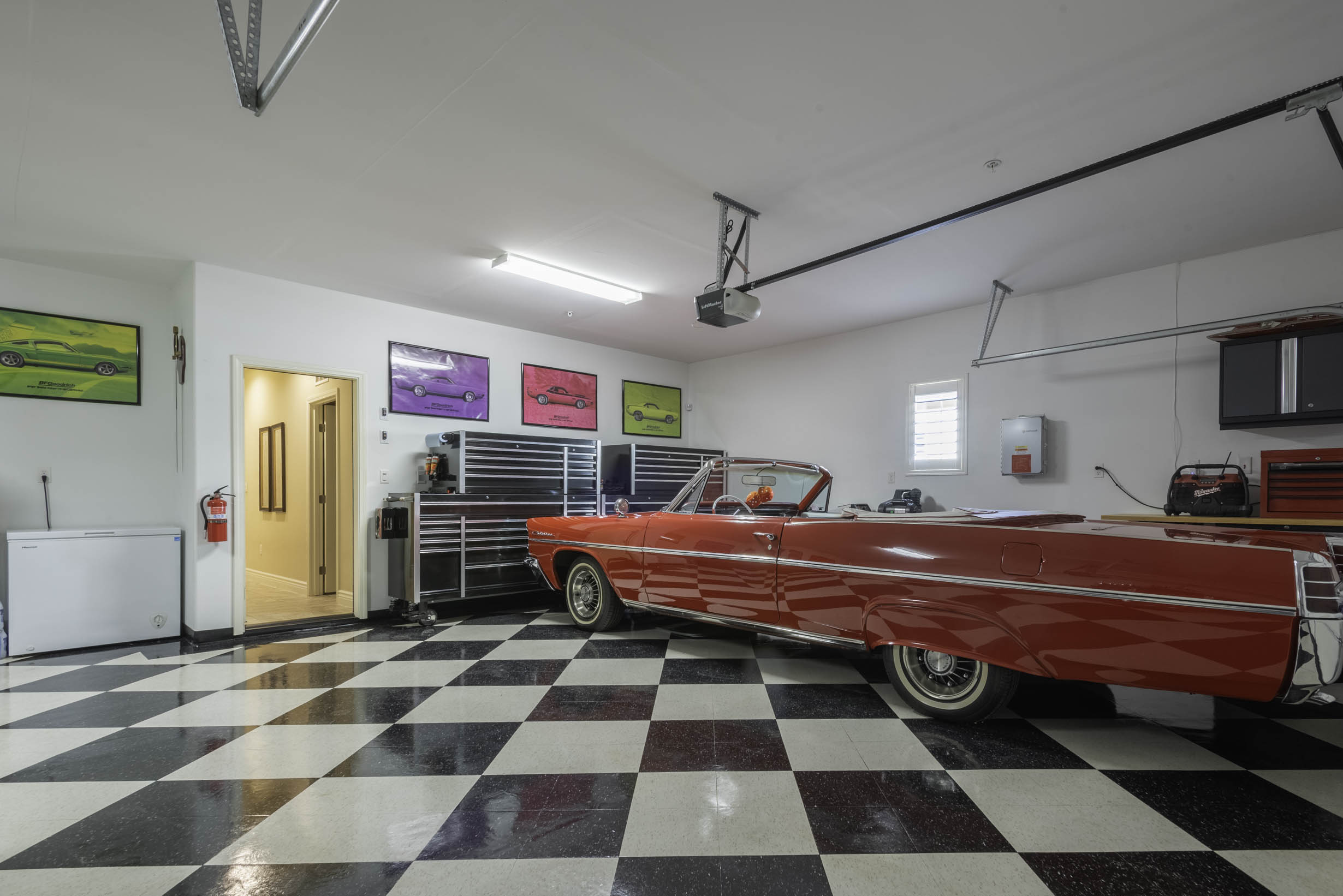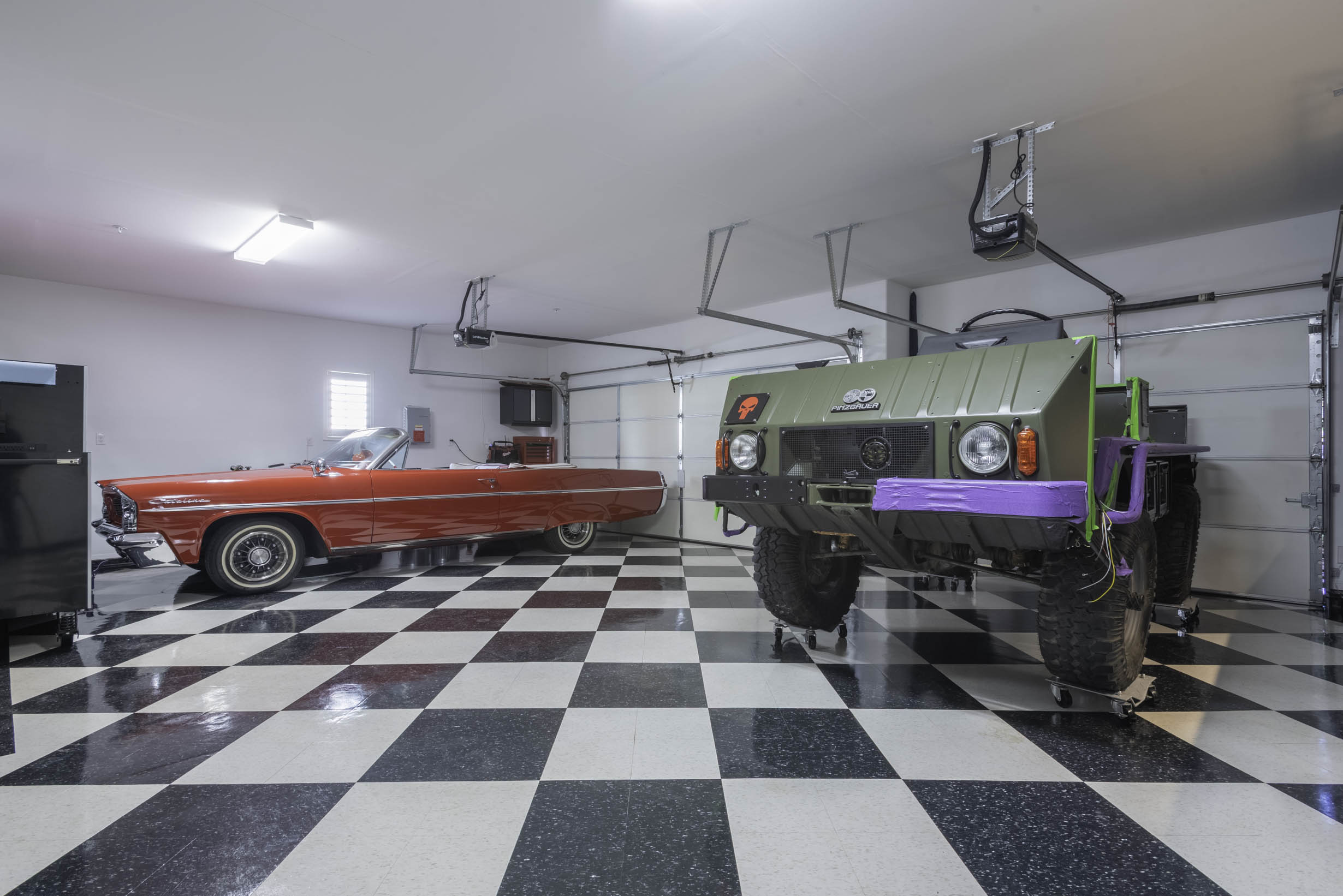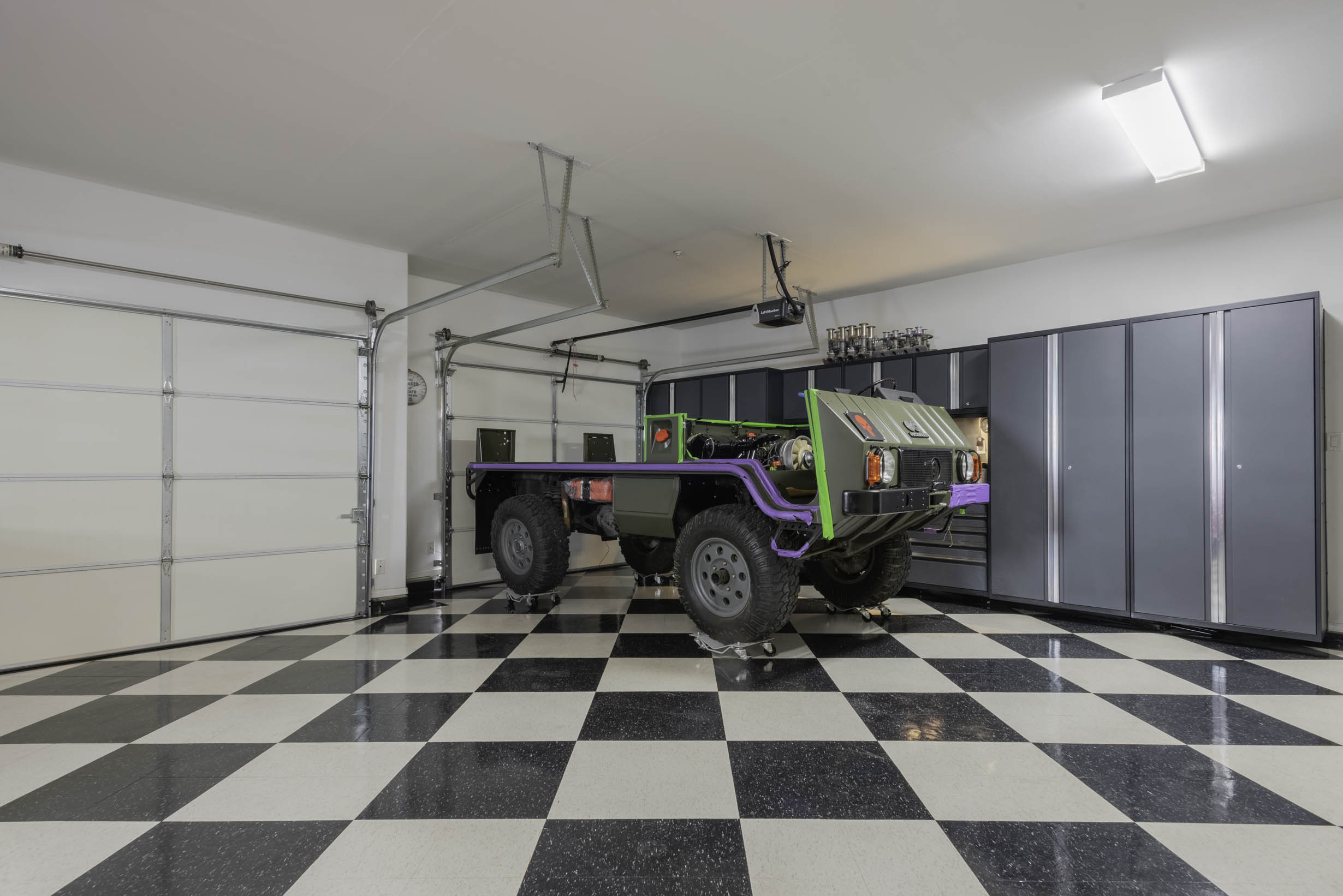 3 Car garage w/custom interior upgrades + cabinets and workbench