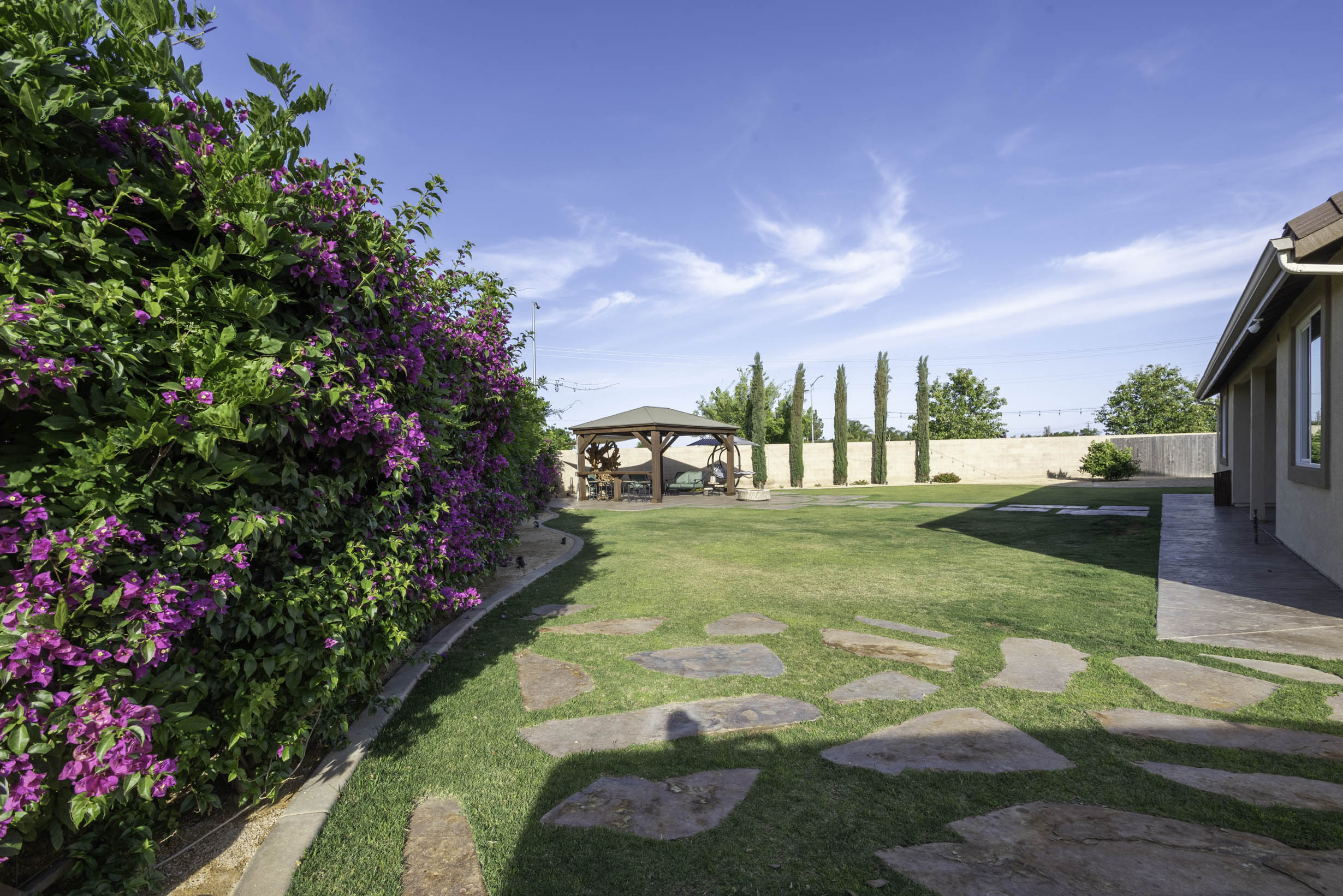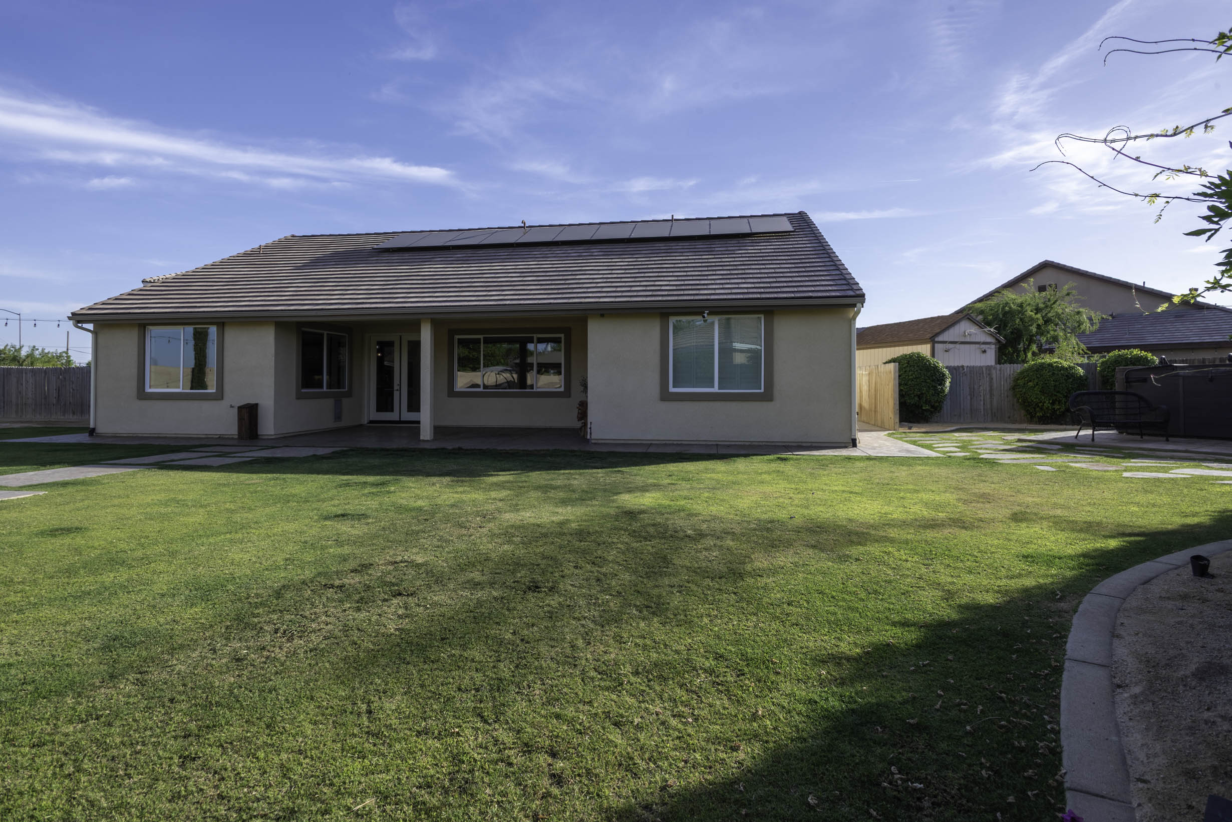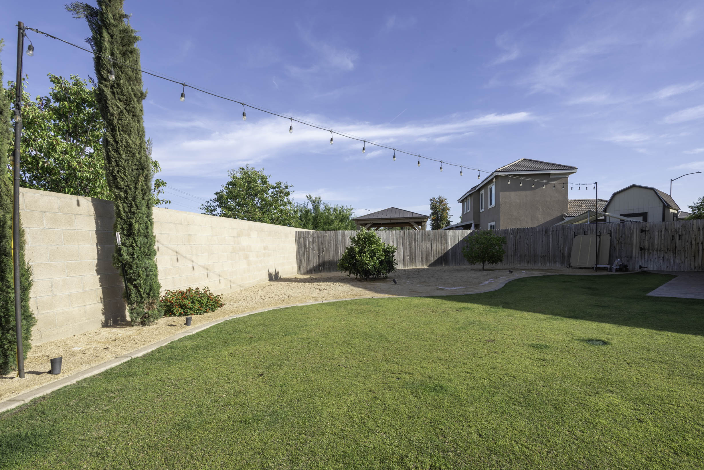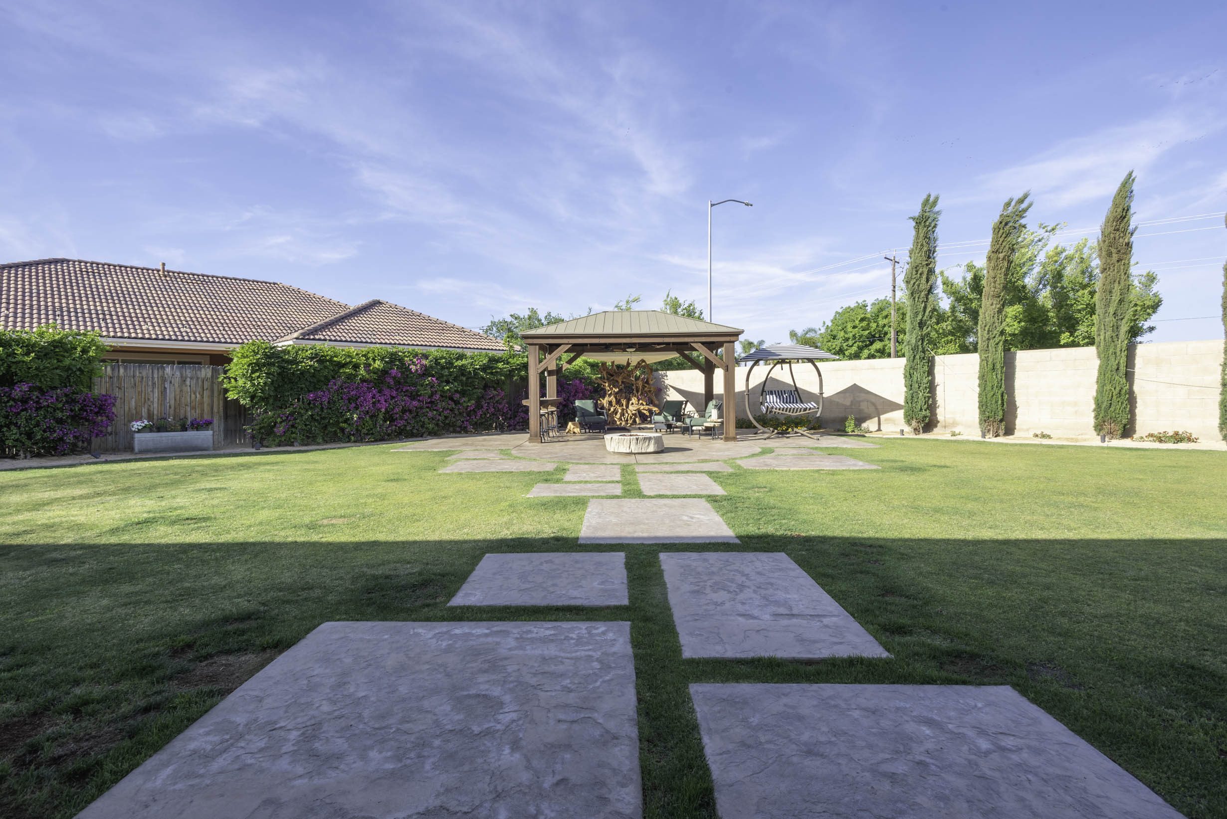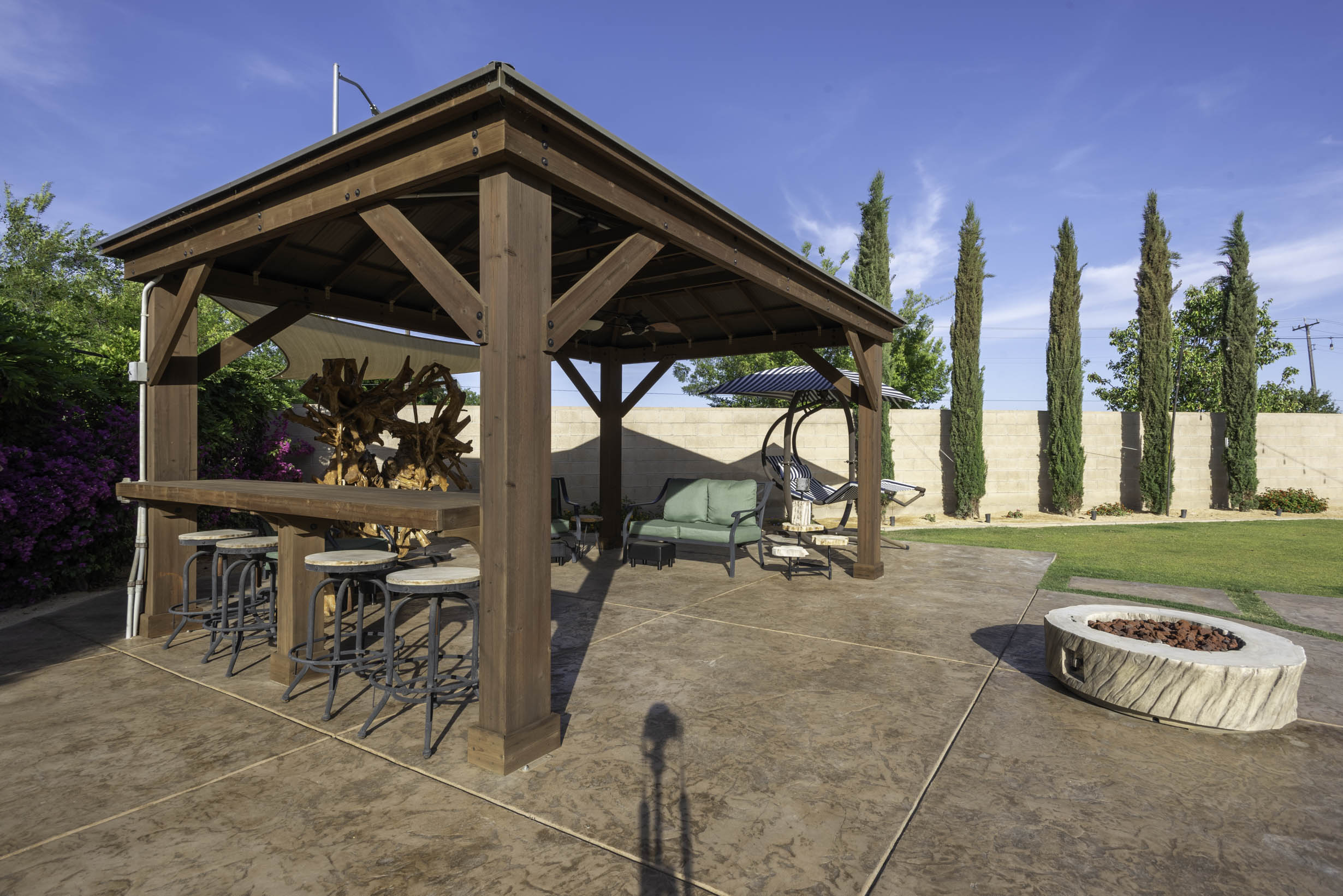 Park-like grassy space w/pagoda- w/bar-top seating and fire-pit