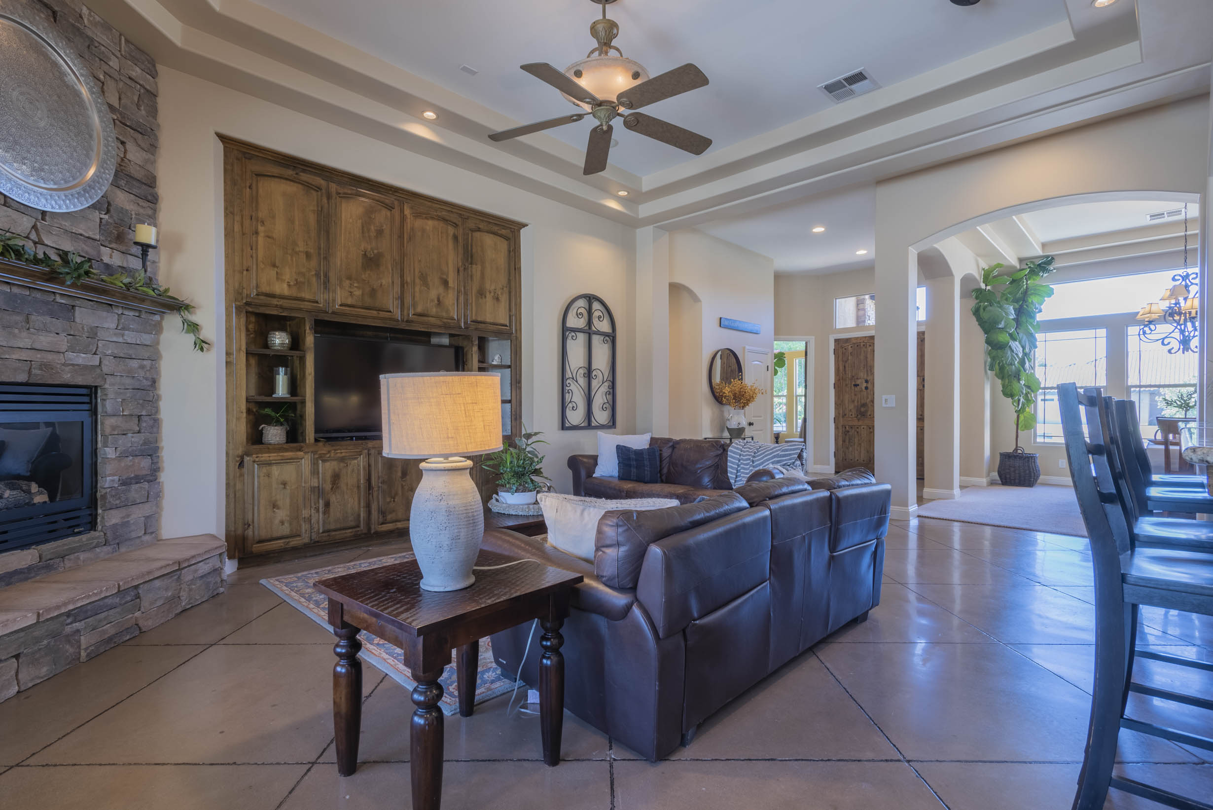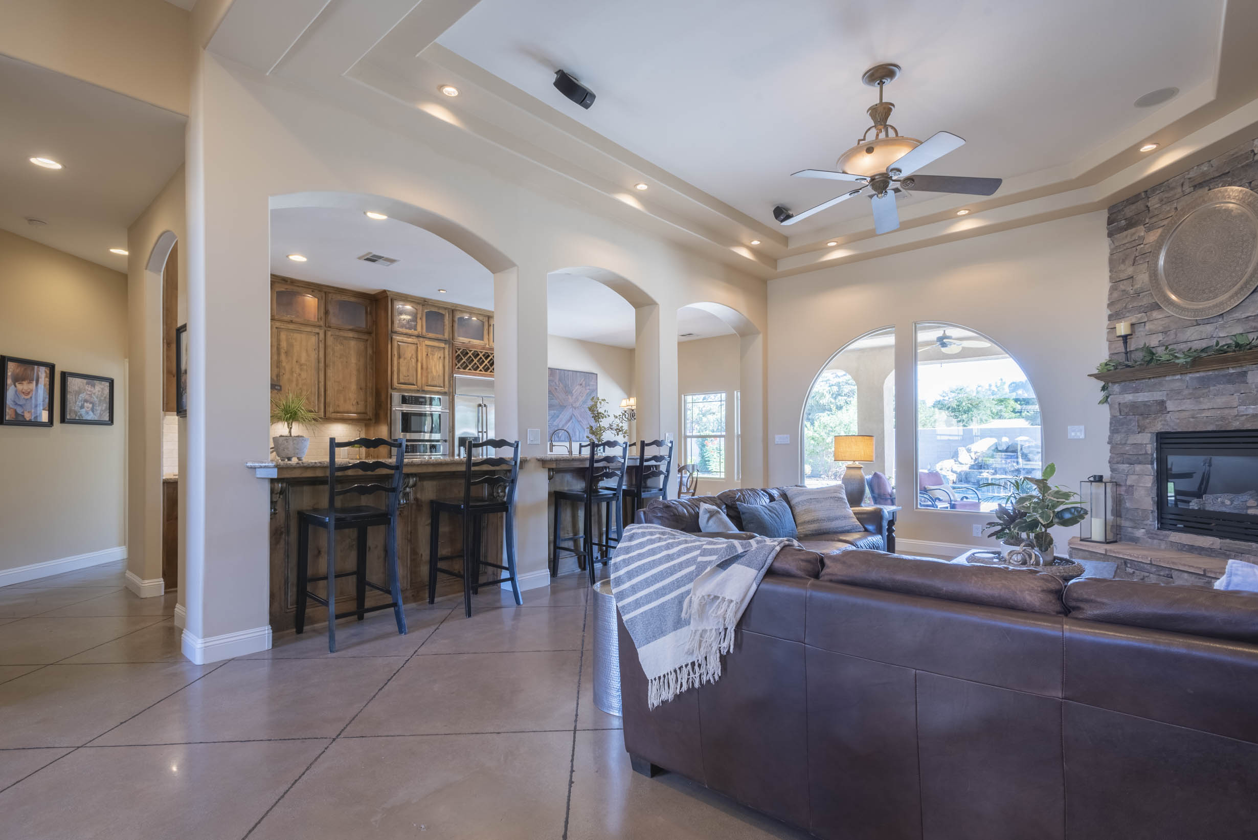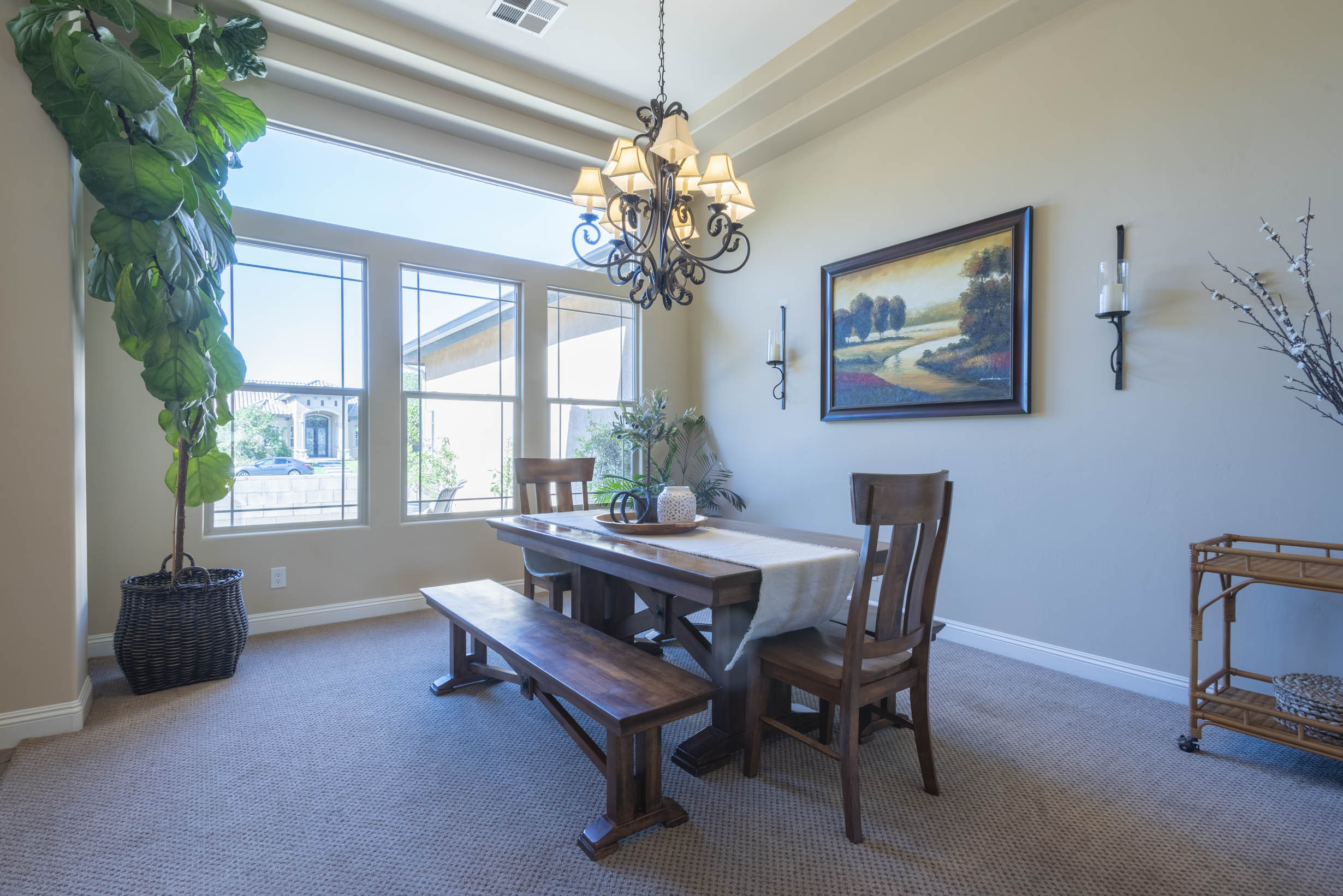 High-end interiors; architectural details, high ceilings, transit windows, French doors, stair-step ceilings