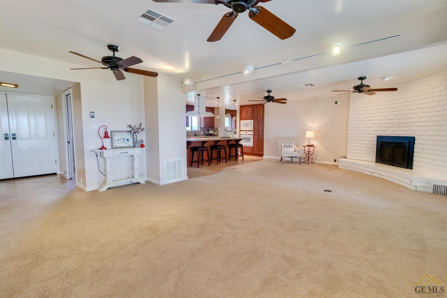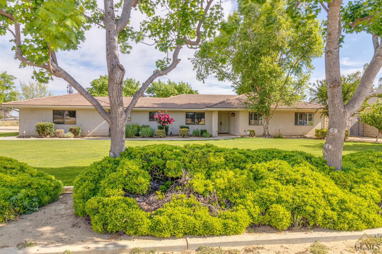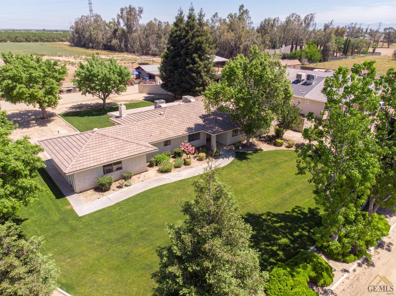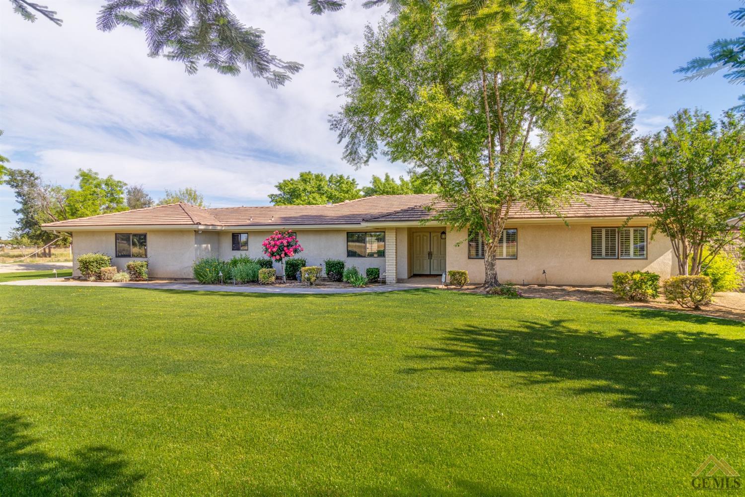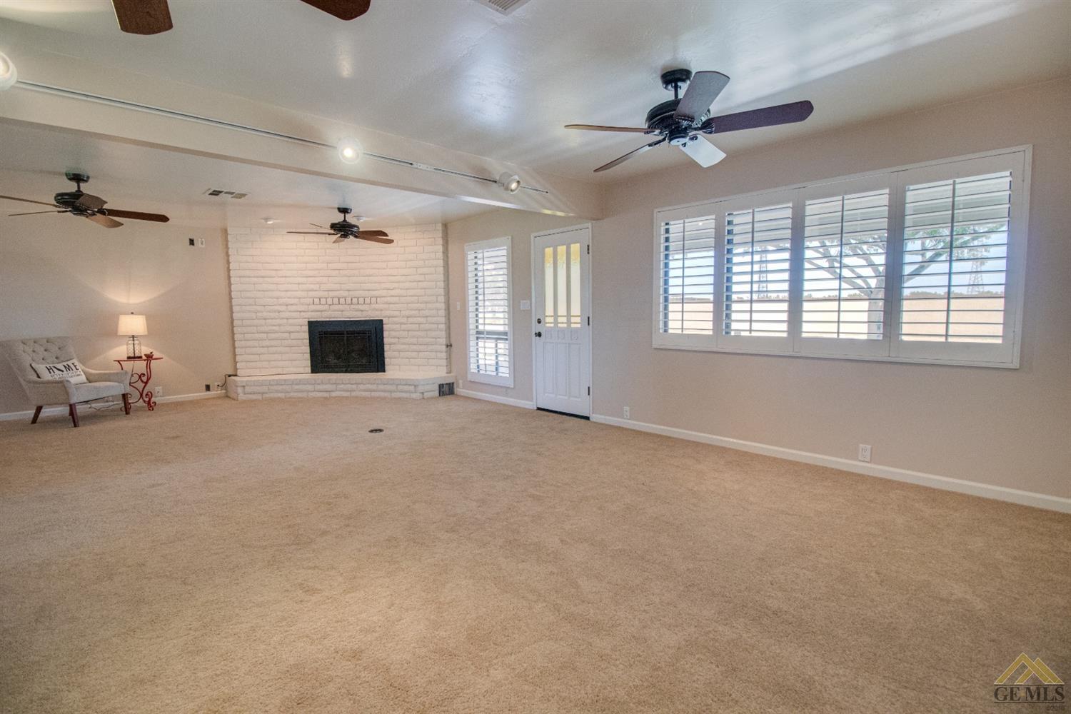 | Here’s a fantastic opportunity to own a single-story 4 bedroom 2 3/4 bath home on a large lot in the country-like atmosphere of Northwest Bakersfield! With an appealing open floor plan ideal for entertaining, you’ll find a spacious greatroom w/large corner slump-stone fireplace, lovely kitchen & sunny breakfast nook. This beautiful kitchen features spacious granite-slab island w/breakfast seating, glass cook top and beautiful pendant lighting. Generous stained cabinets. Just off the kitchen is a large storage area that leads into the laundry room w/built-in cabinets as well as an additional bath. The master retreat has a built-in book case & ensuite with a mirrored wardrobe space and shower. Generous appointments throughout include shuttered & blind window treatments, neutral tile and carpet flooring. Exterior amenities include spacious & mature front & rear landscaping w/a large covered patio & 2 car garage set back off the main street. There’s so much room to roam! |