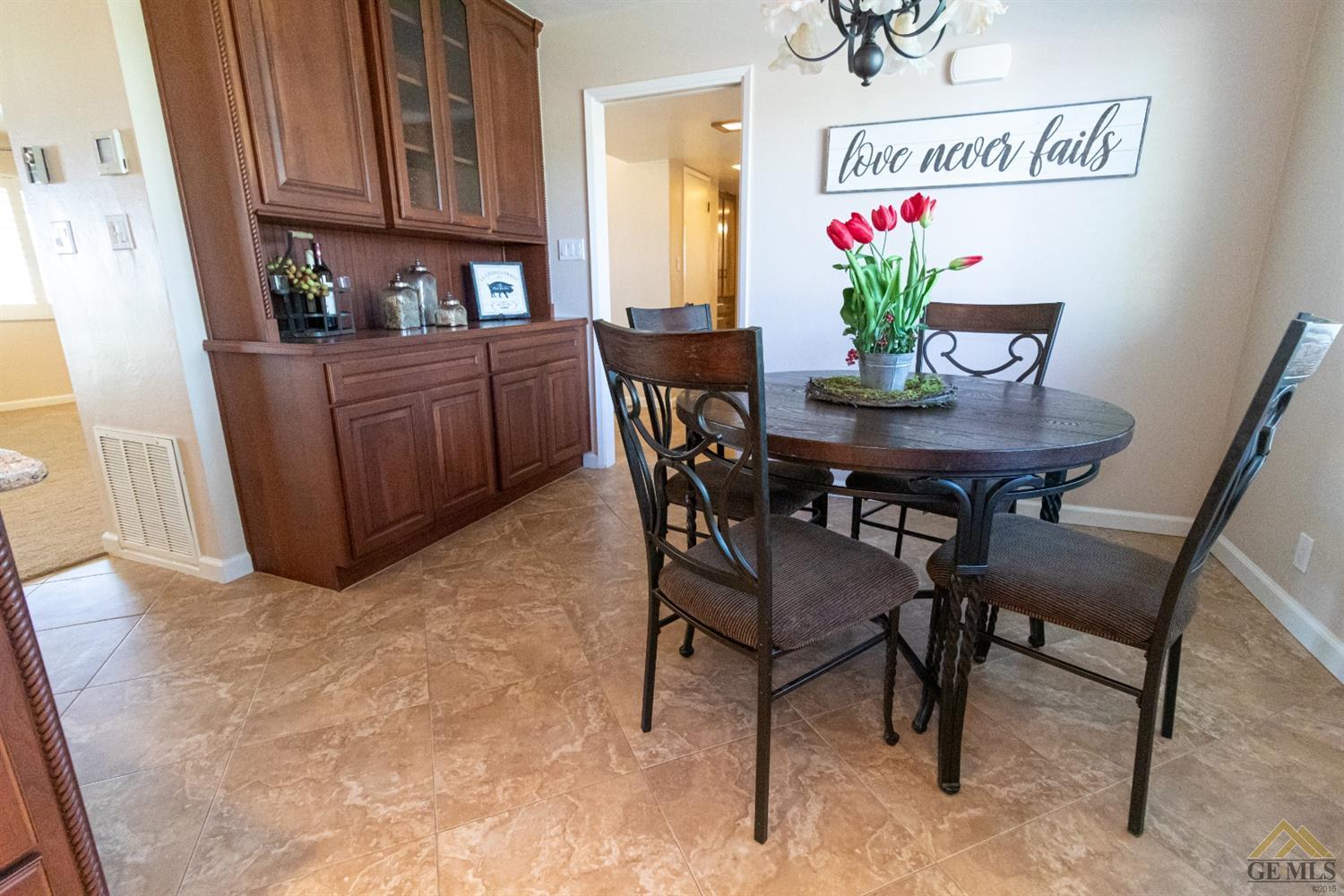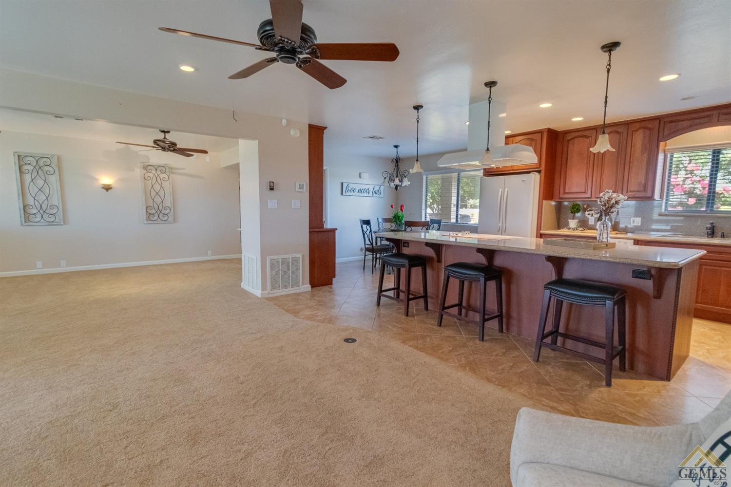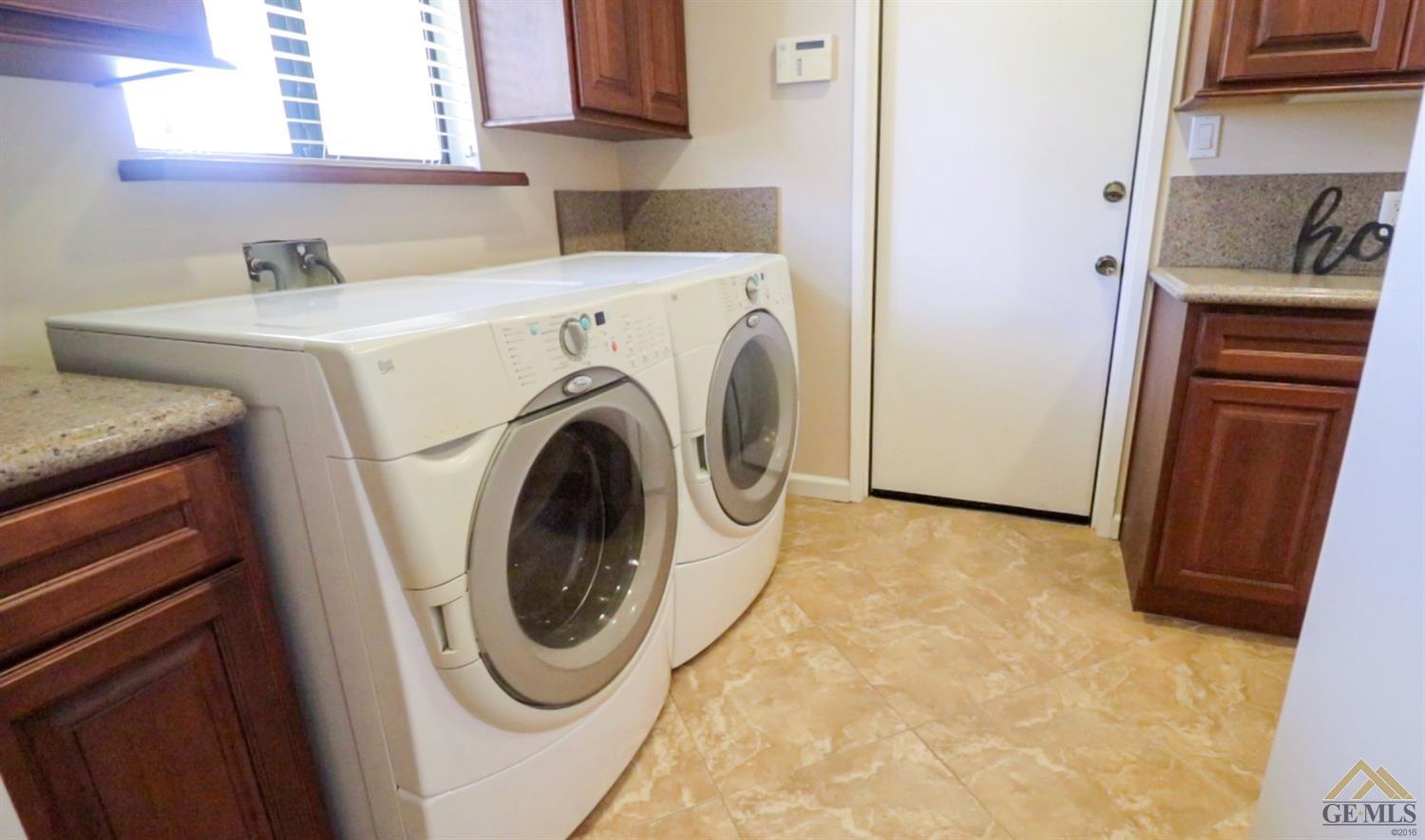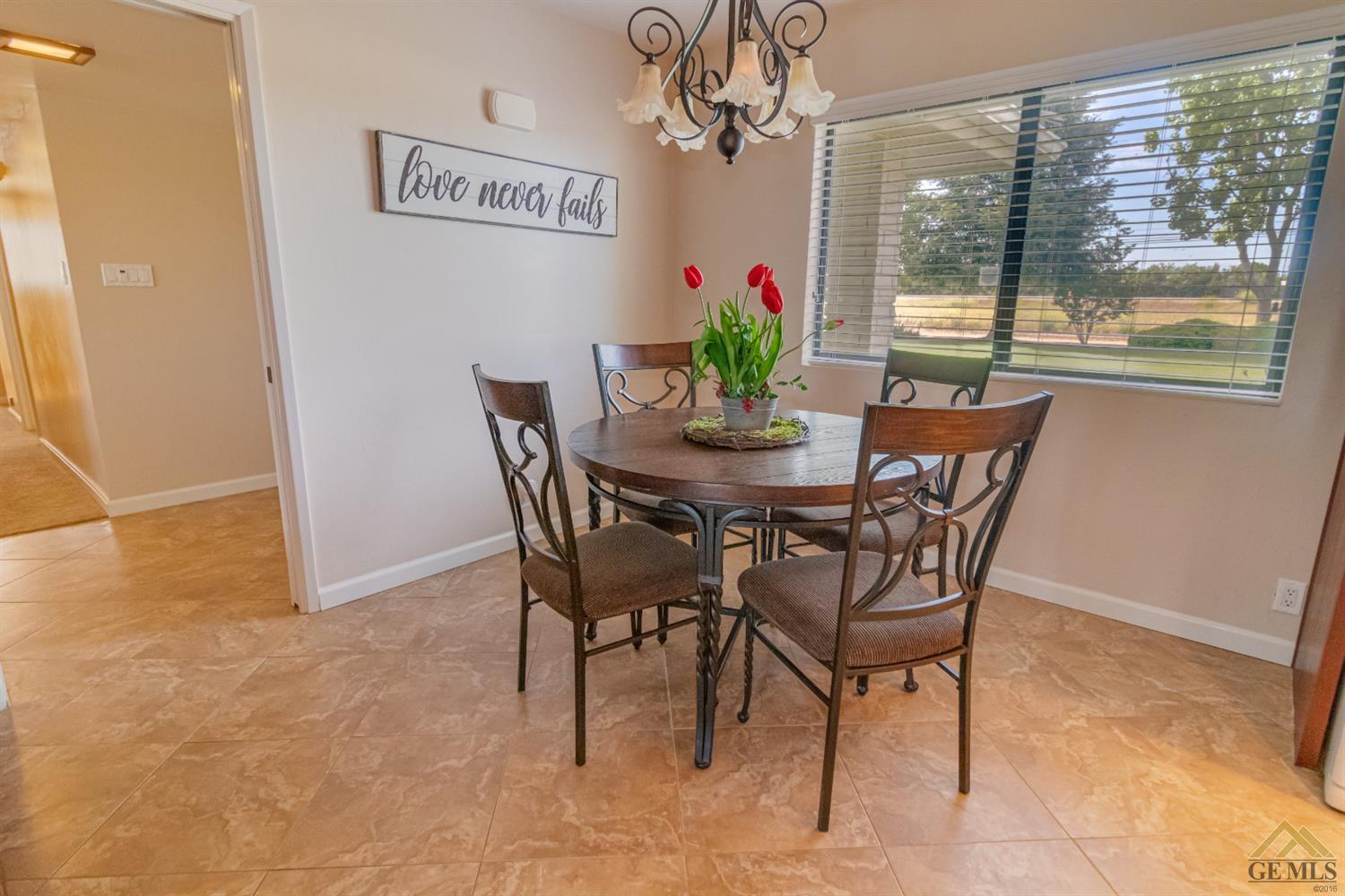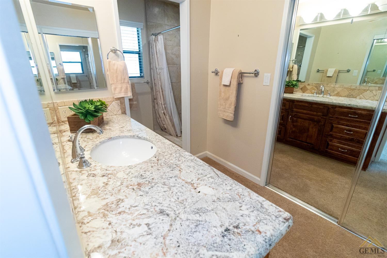 | Here’s a fantastic opportunity to own a single-story 4 bedroom 2 3/4 bath home on a large lot in the country-like atmosphere of Northwest Bakersfield! With an appealing open floor plan ideal for entertaining, you’ll find a spacious greatroom w/large corner slump-stone fireplace, lovely kitchen & sunny breakfast nook. This beautiful kitchen features spacious granite-slab island w/breakfast seating, glass cook top and beautiful pendant lighting. Generous stained cabinets. Just off the kitchen is a large storage area that leads into the laundry room w/built-in cabinets as well as an additional bath. The master retreat has a built-in book case & ensuite with a mirrored wardrobe space and shower. Generous appointments throughout include shuttered & blind window treatments, neutral tile and carpet flooring. Exterior amenities include spacious & mature front & rear landscaping w/a large covered patio & 2 car garage set back off the main street. There’s so much room to roam! |