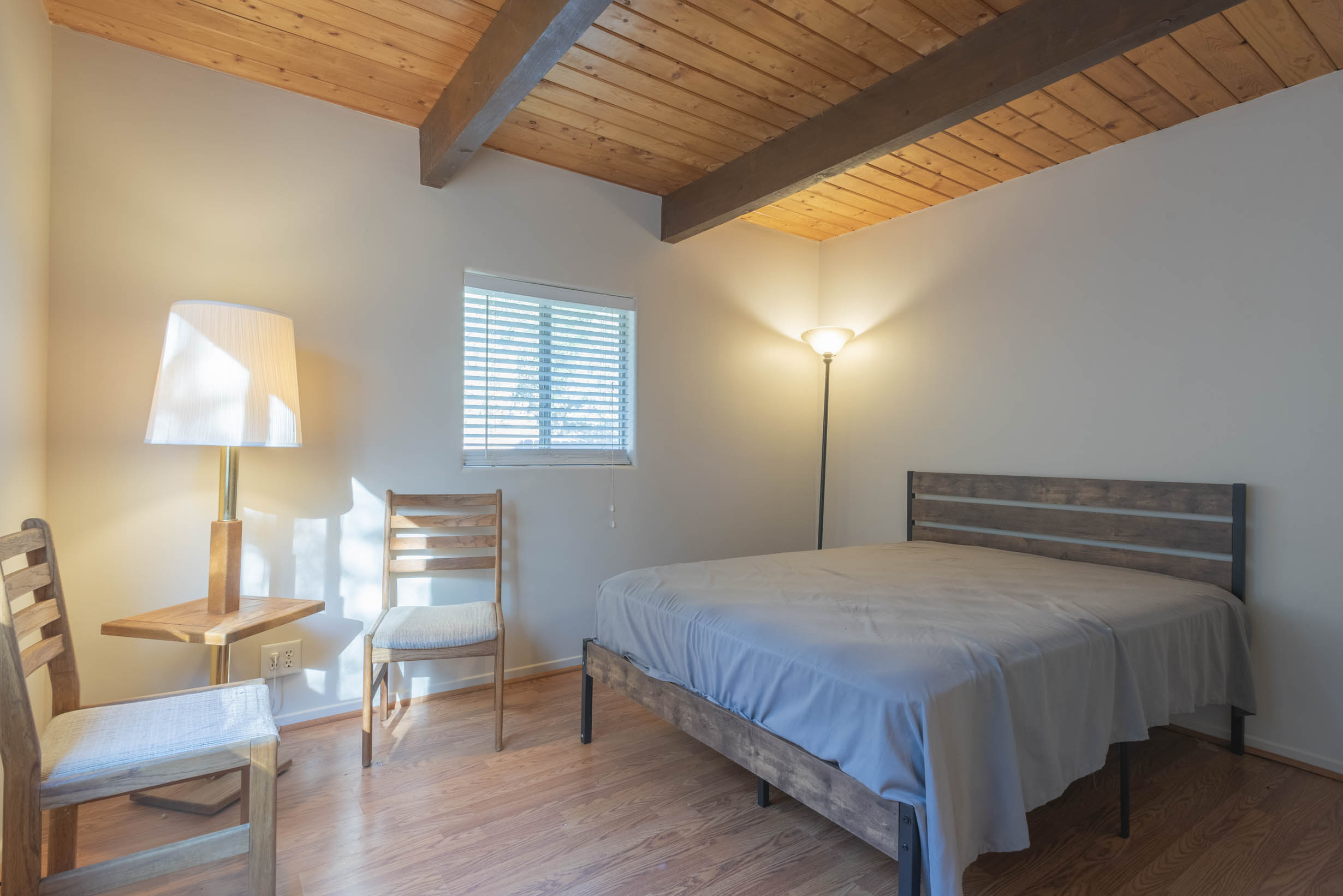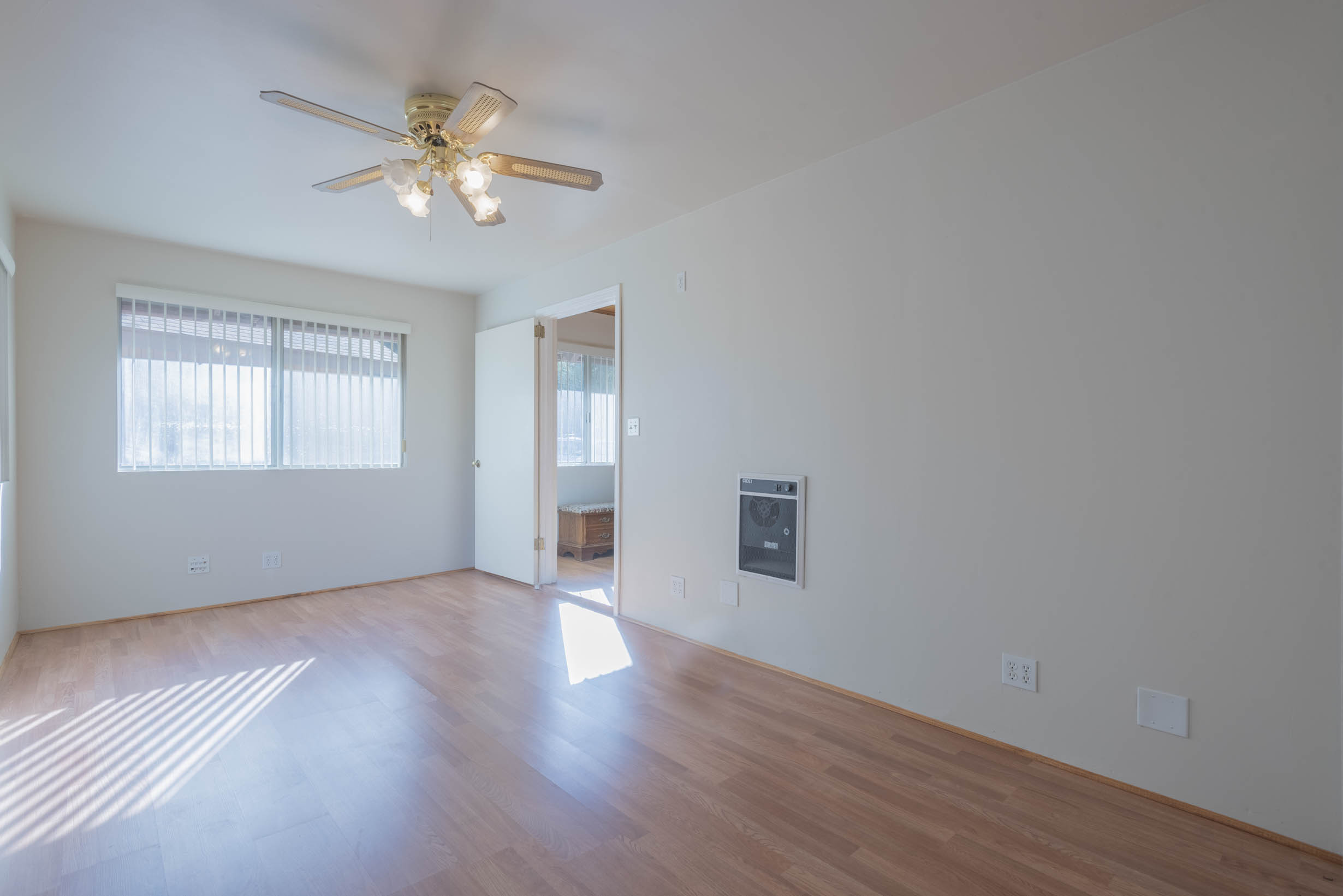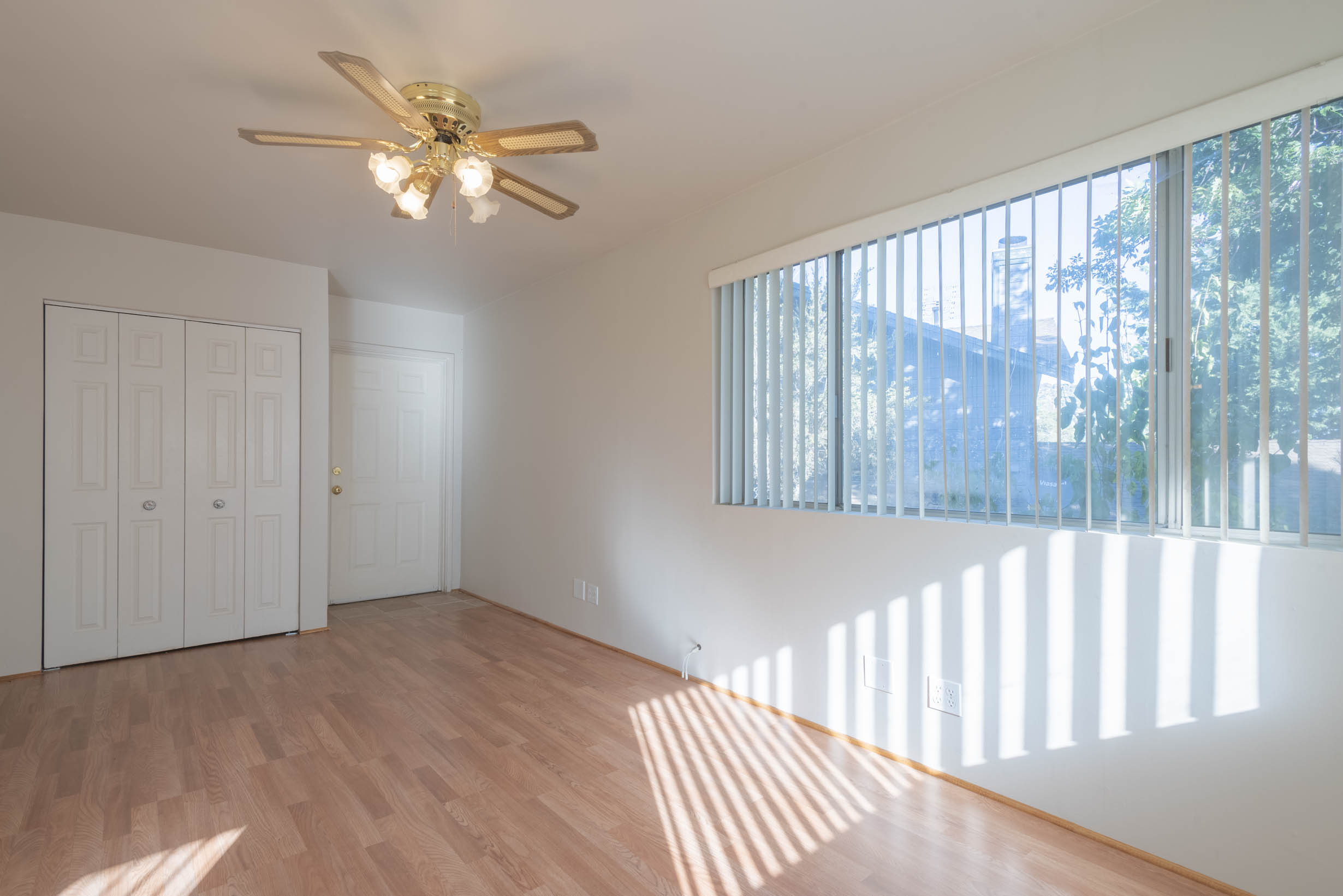 Laminate flooring, window coverings, stackable washer/dryer location