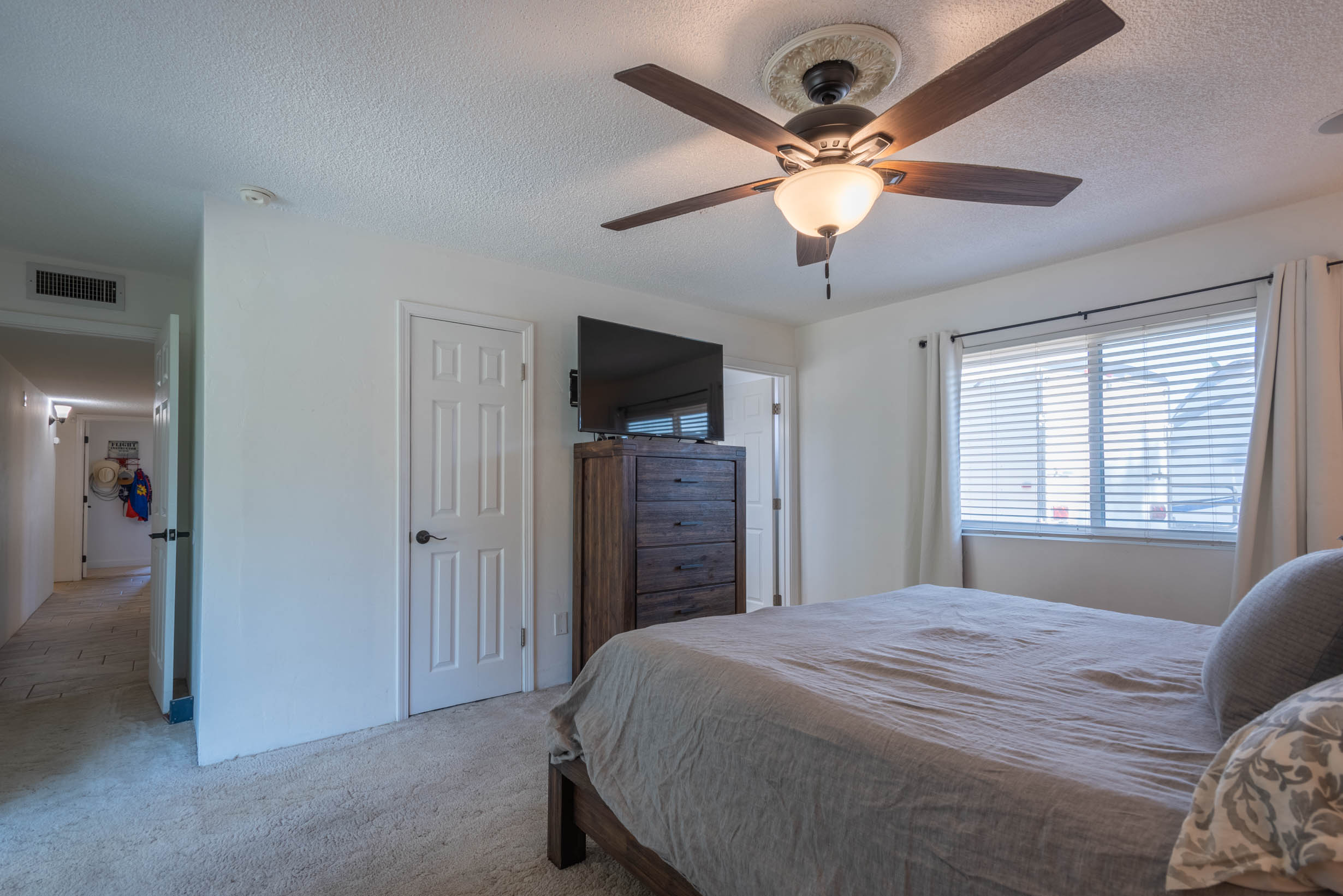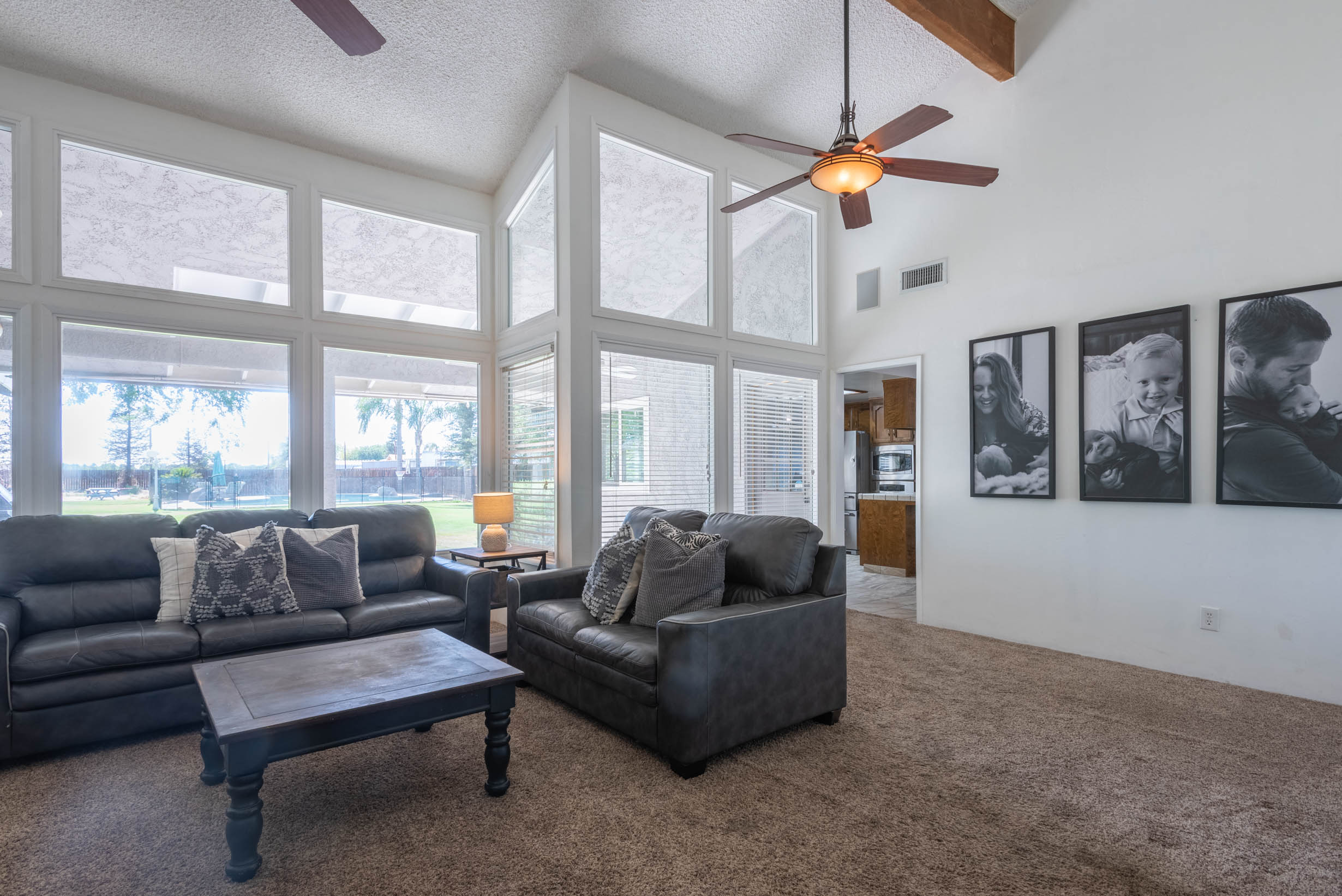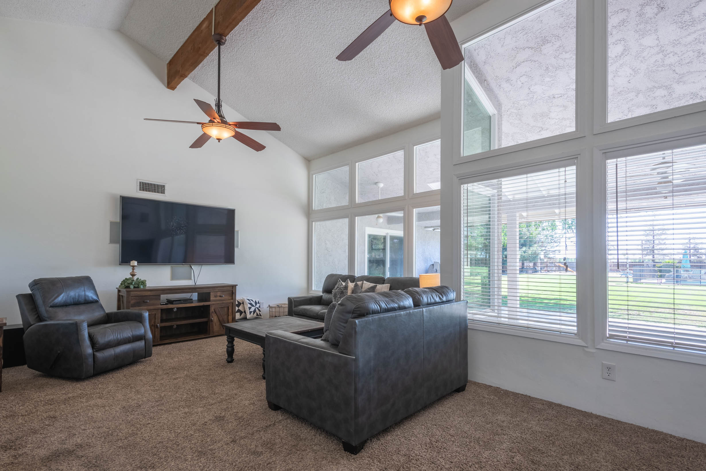 Vaulted Ceiling w/Wood Beam & Ceiling Fans