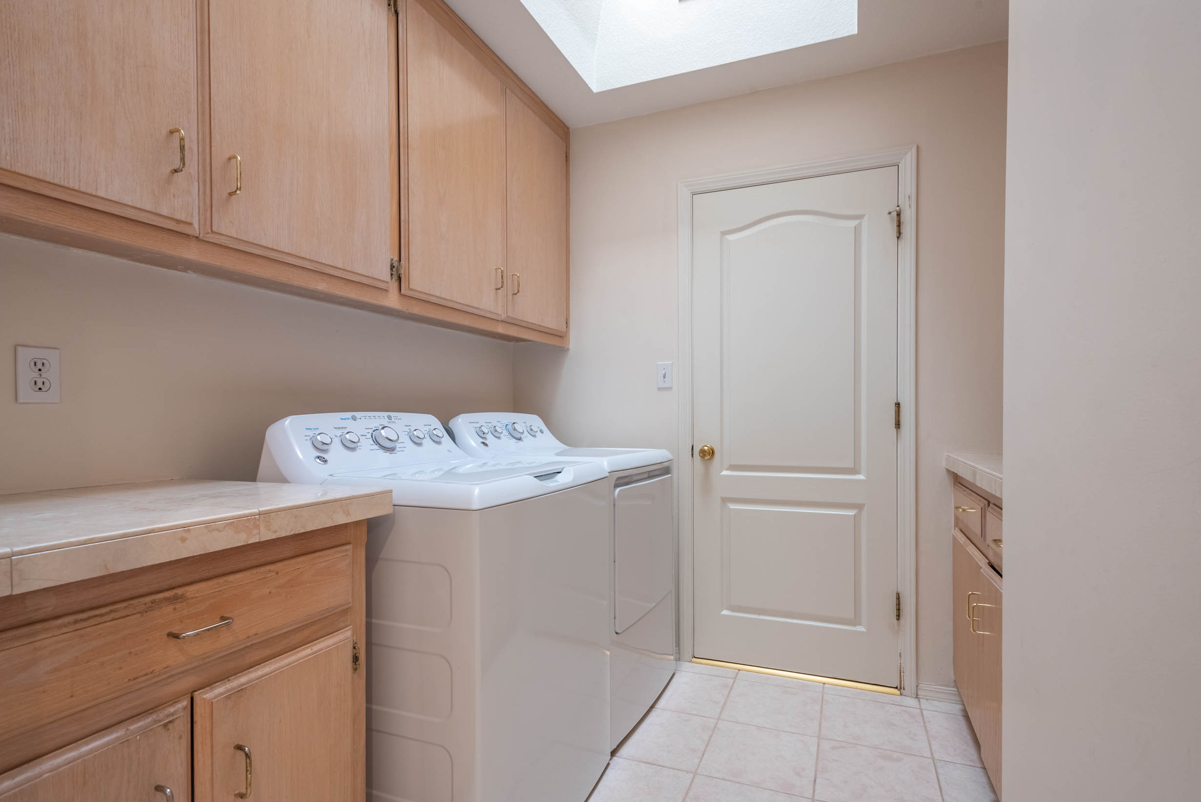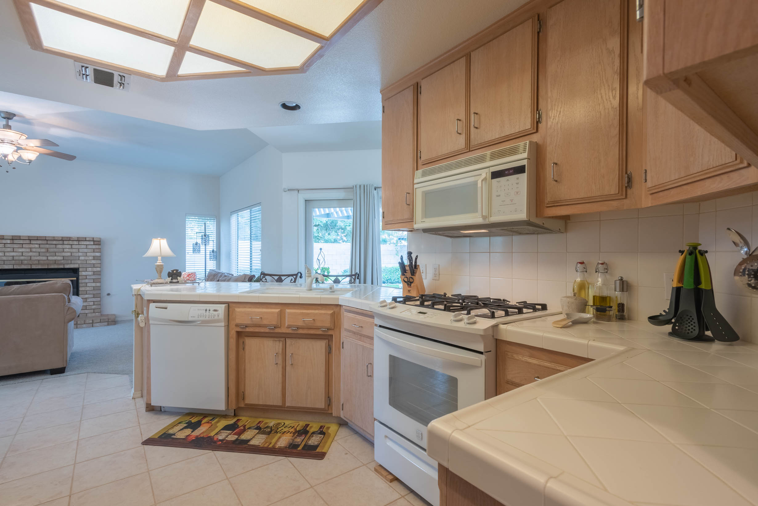 Gas cooktop, generous stained cabinets throughout